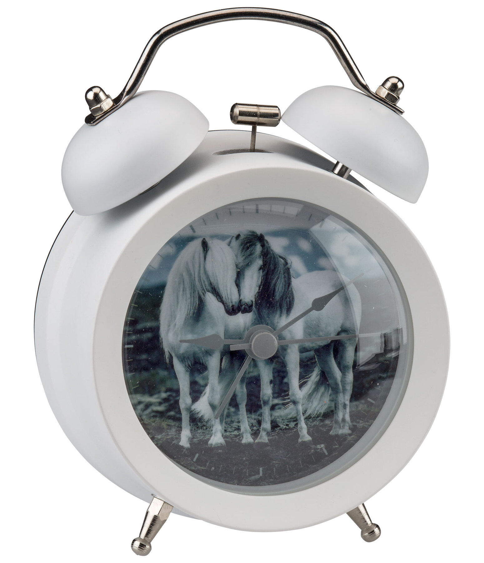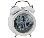 Petit réveil avec un joli motif cheval. 8,4 x 12,5 x 5 cm.