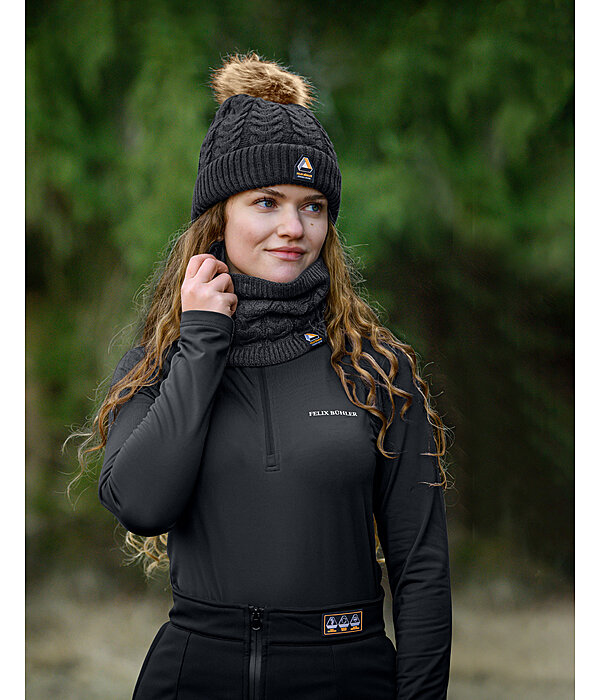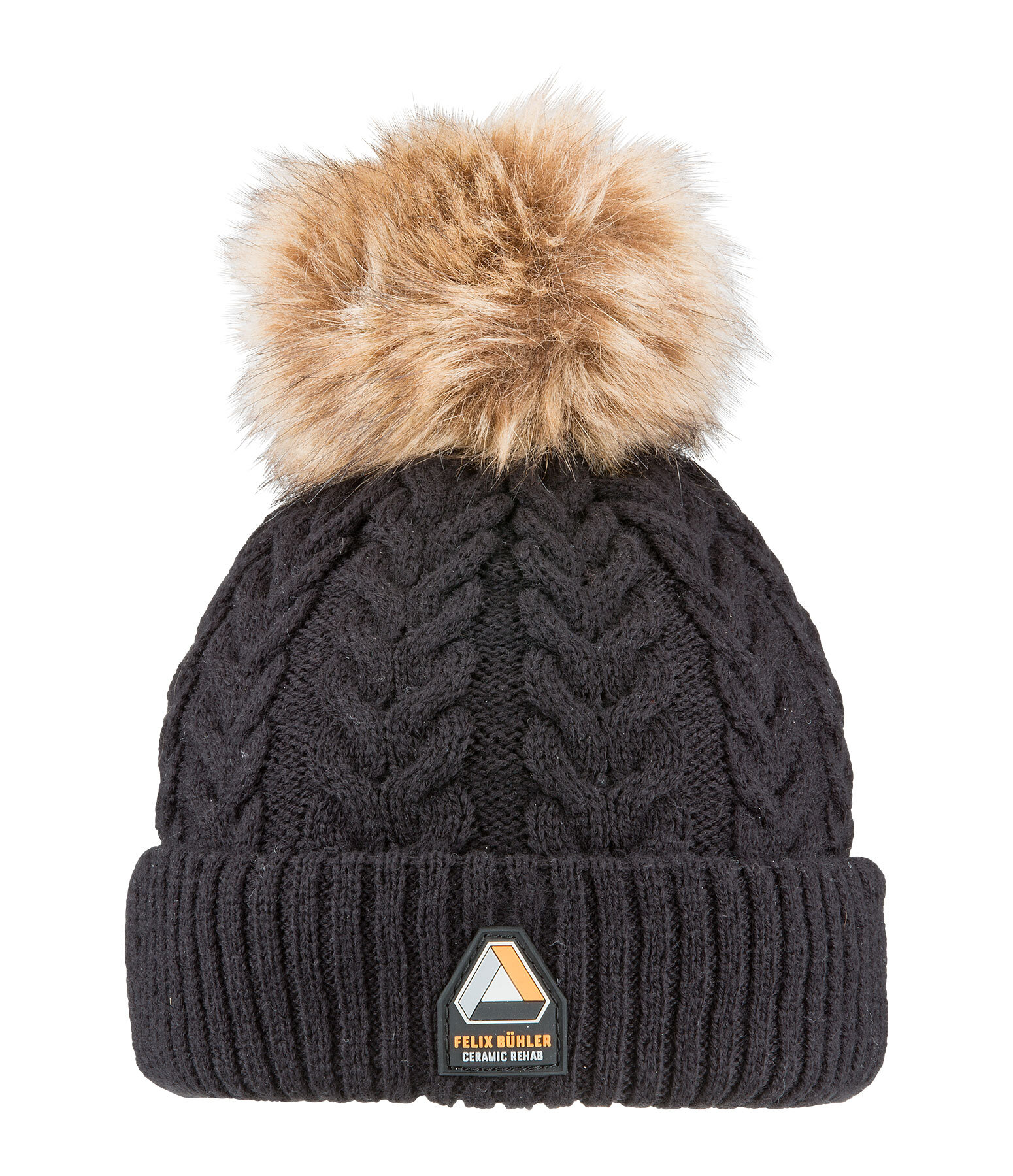 Bonnet en tricot à larges mailles, avec motif torsadé et doublure en polaire douce avec fibres de céramique pour faciliter la circulation sanguine et aider à soulager les maux de tête. Les particules de céramique réfléchissent la chaleur corporelle sous forme de rayonnement infrarouge, garantissant ainsi une température agréable. Avec pompon douillet et fourrure synthétique. Nous déconseillons l'utilisation des articles contenant des fibres de céramique aux femmes enceintes.