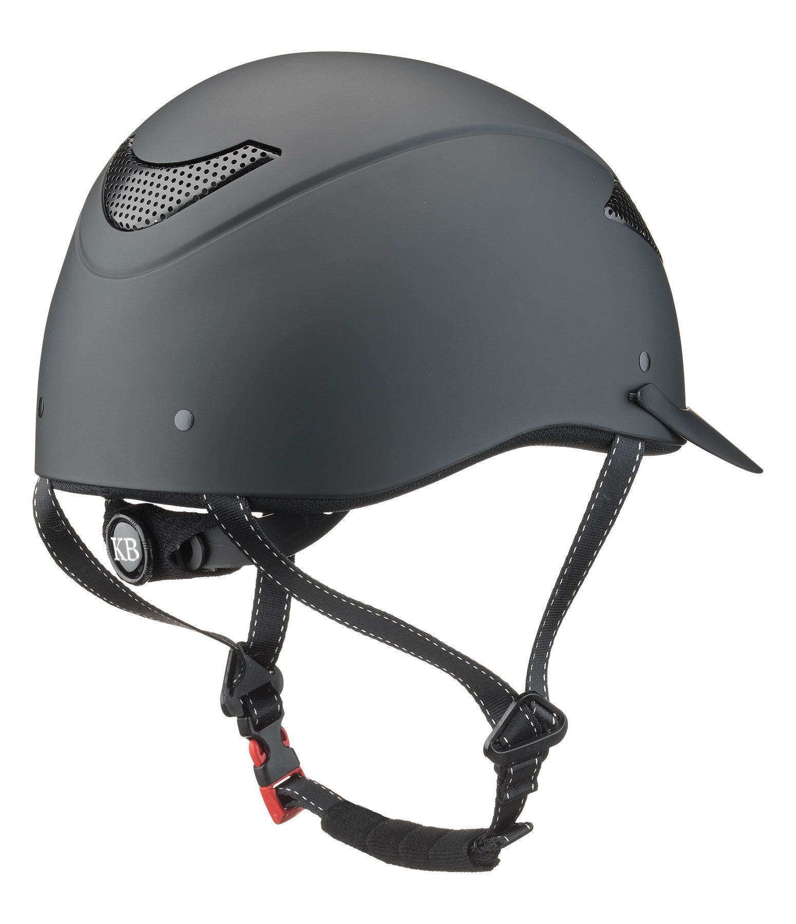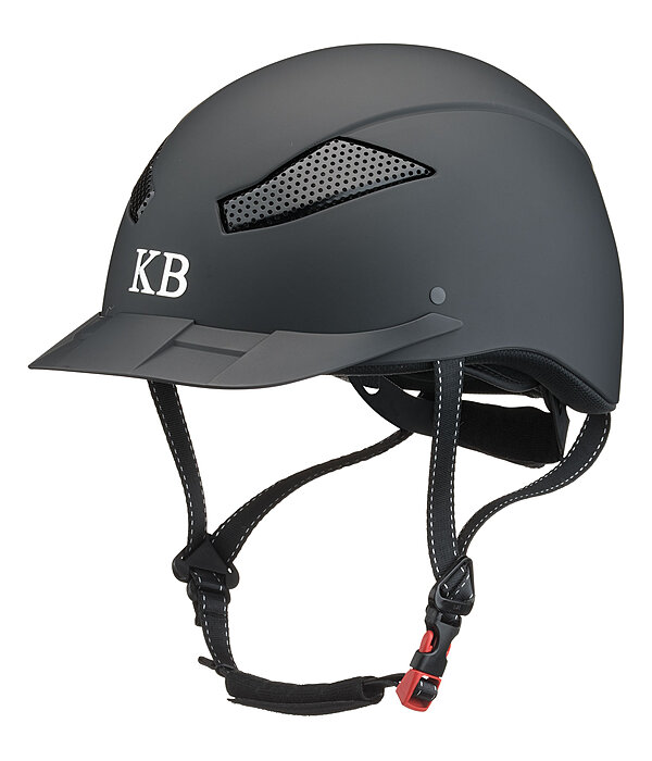 Casque d'équitation élégant KNIGHTSBRIDGE offrant un excellent rapport qualité/prix. Ce casque assure une parfaite absorption des chocs pour garantir un niveau de sécurité maximal. Les fentes d'aération à l'avant et à l'arrière du casque sont recouvertes d'une grille métallique solide et permettent une ventilation optimale. Deux doublures différentes incluses pour une adaptation en fonction de la forme de la tête (ronde ou ovale), en plus d'une molette de réglage à l'arrière. La visière du casque est fabriquée en plastique souple. Jugulaire en polaire douce. Certifié selon la norme EN1384:2023.