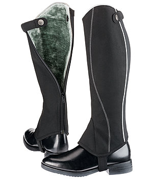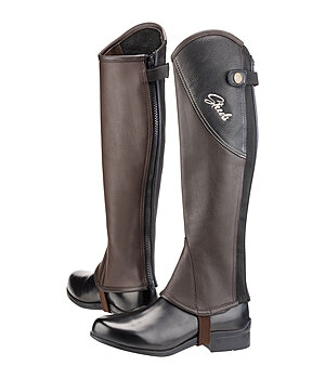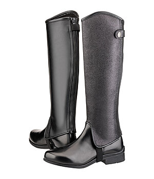 Souvent, le choix entre chaps et bottes d'équitation est une question de prix. Tous les cavaliers ne peuvent pas s'offrir des bottes d'équitation en cuir coûteuses, qui peuvent malgré tout durer longtemps si elles sont bien entretenues. Les mini-chaps rigides sont un bon compromis entre les mini-chaps souples et les bottes d'équitation : elles sont fabriquées dans un cuir plus dur et se rapprochent visuellement des bottes d'équitation. La fermeture à glissière se trouve à l'arrière, alors qu'elle est latérale sur les mini-chaps souples. Les mini-chaps rigides offrent presque autant de stabilité qu'une botte. Les mini-chaps de la couleur des bottines sont autorisées en compétition.
