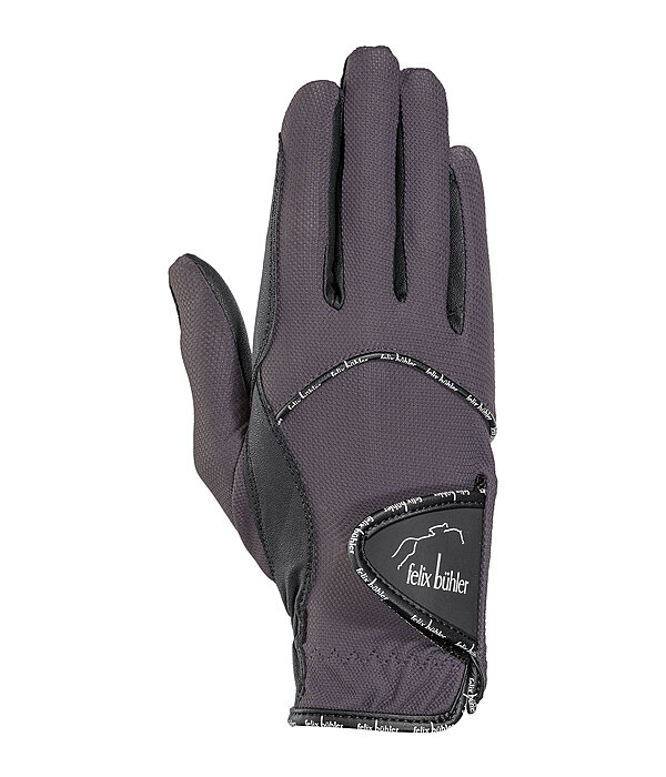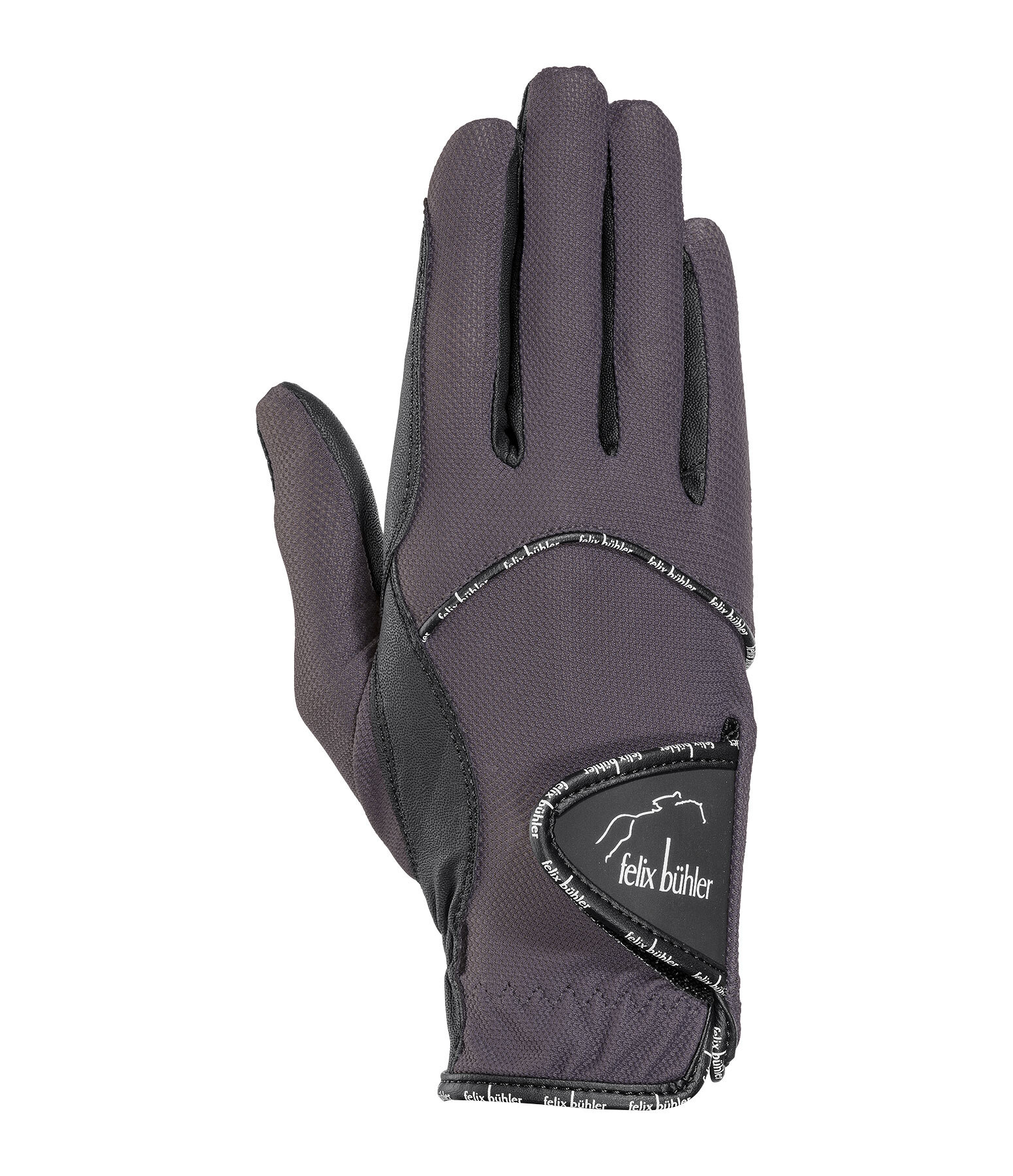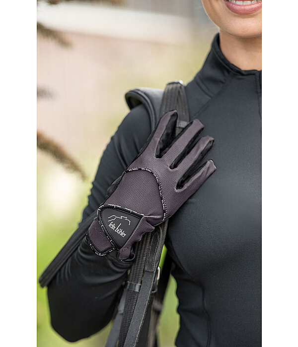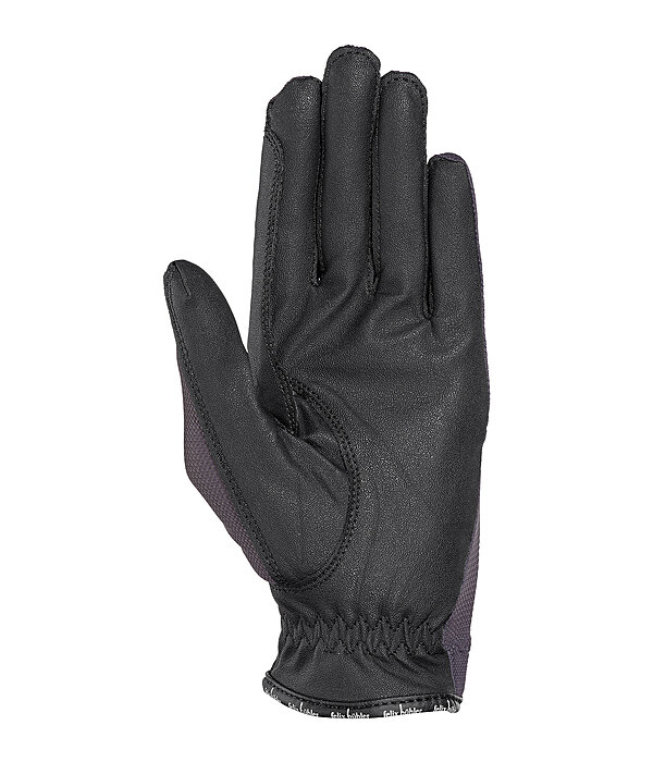Gants d'équitation légers et tendances. Empiècements en tissu mesh élastique et respirant. Élastiqués au niveau des poignets avec patte auto-agrippante. Dessus 60 % polyester, 40 % polyuréthane. Paume 100 % nylon.