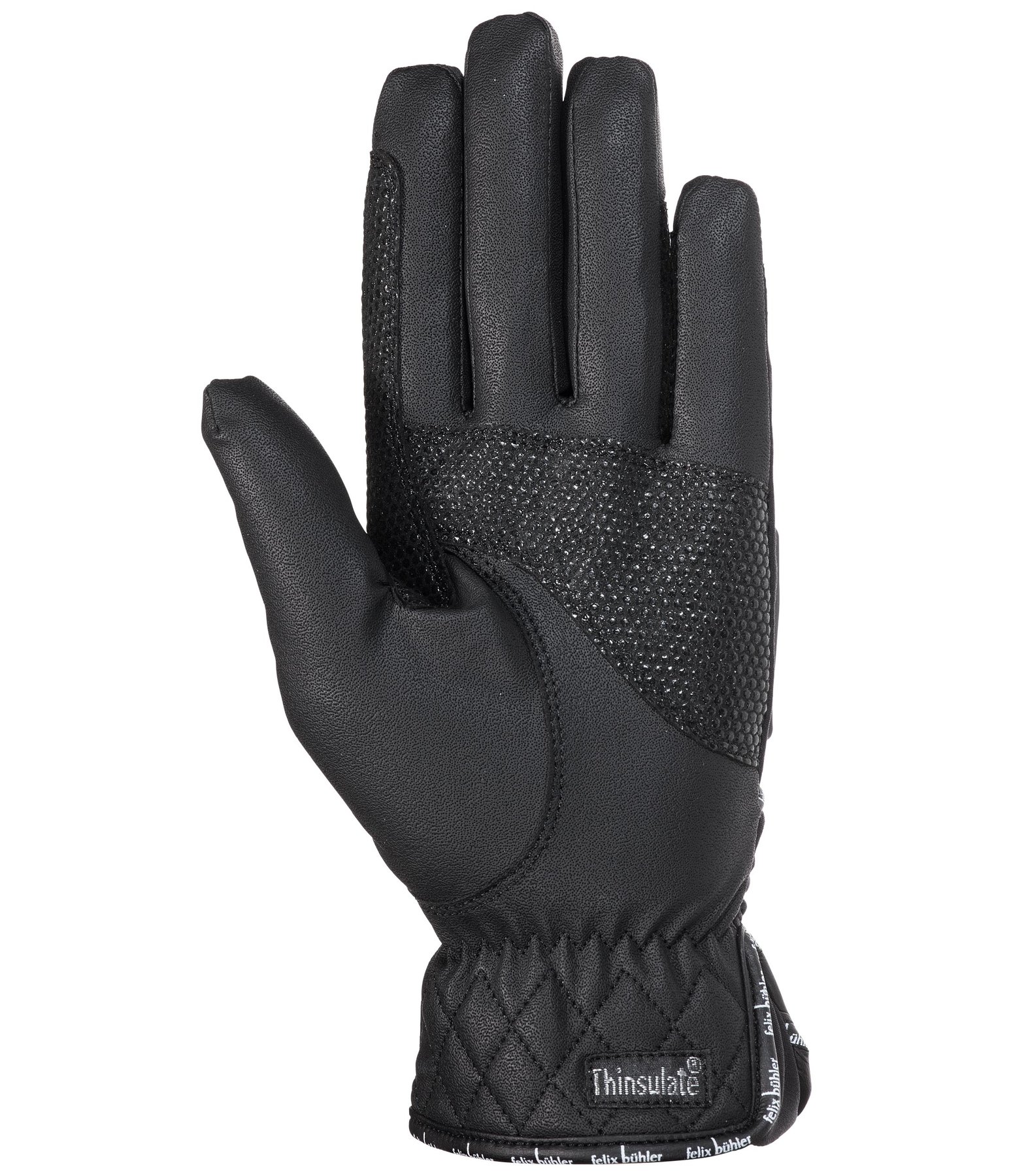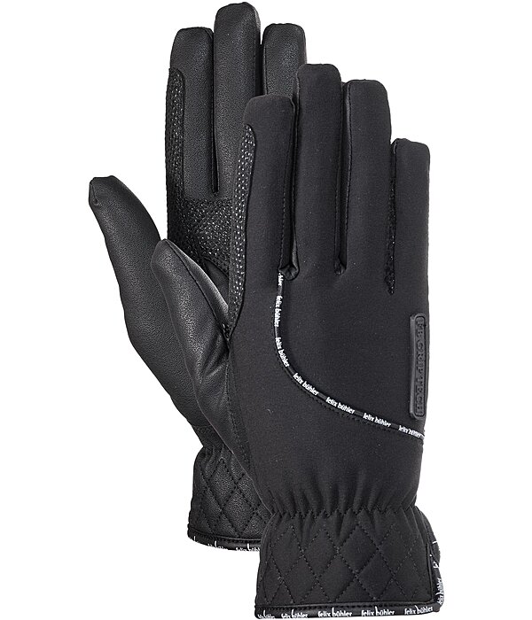 Gants d'hiver avec excellente accroche aux rênes grâce aux imprimés grip sur la matière synthétique du côté paume de la main. Déperlants, coupe-vent et respirants. Doublure Thinsulate. Dessus 87 % polyester, 13 % élasthanne. Paume 100 % polyester avec revêtement polyuréthane. Doublure 100 % polyester.