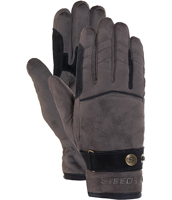 Gants chauds et douillets en polaire. Avec renforts intégrés aux passages de rênes et finition bouton-pression au poignet.