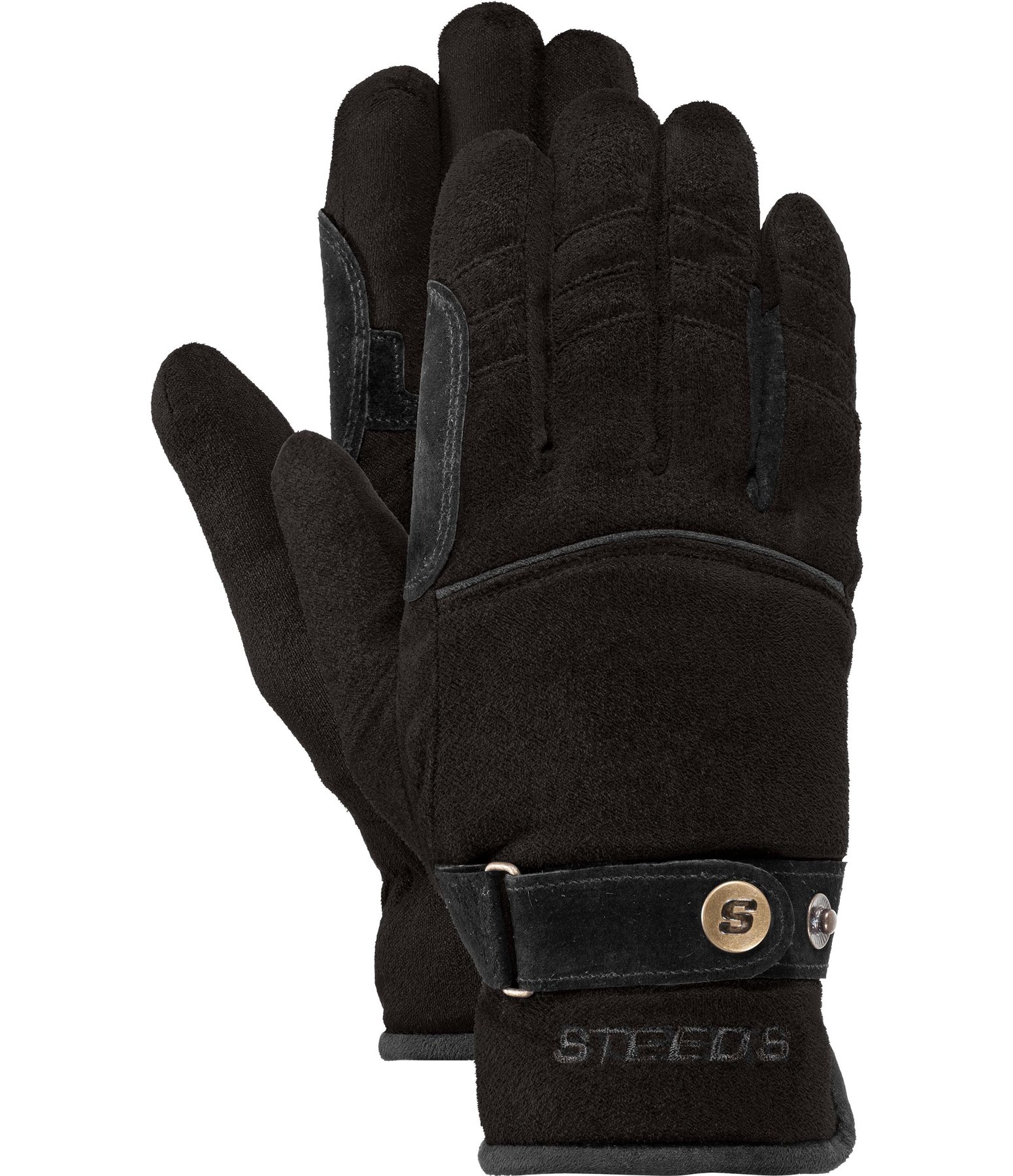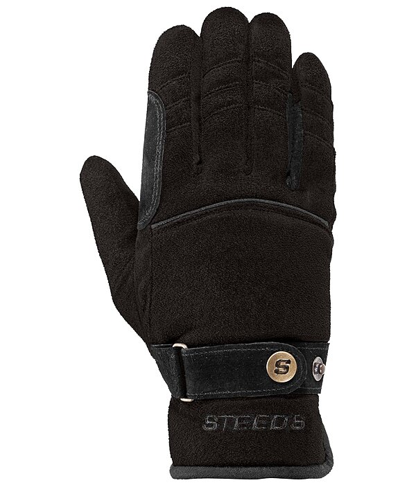 Gants chauds et douillets en polaire. Avec renforts intégrés aux passages de rênes et finition bouton-pression au poignet.