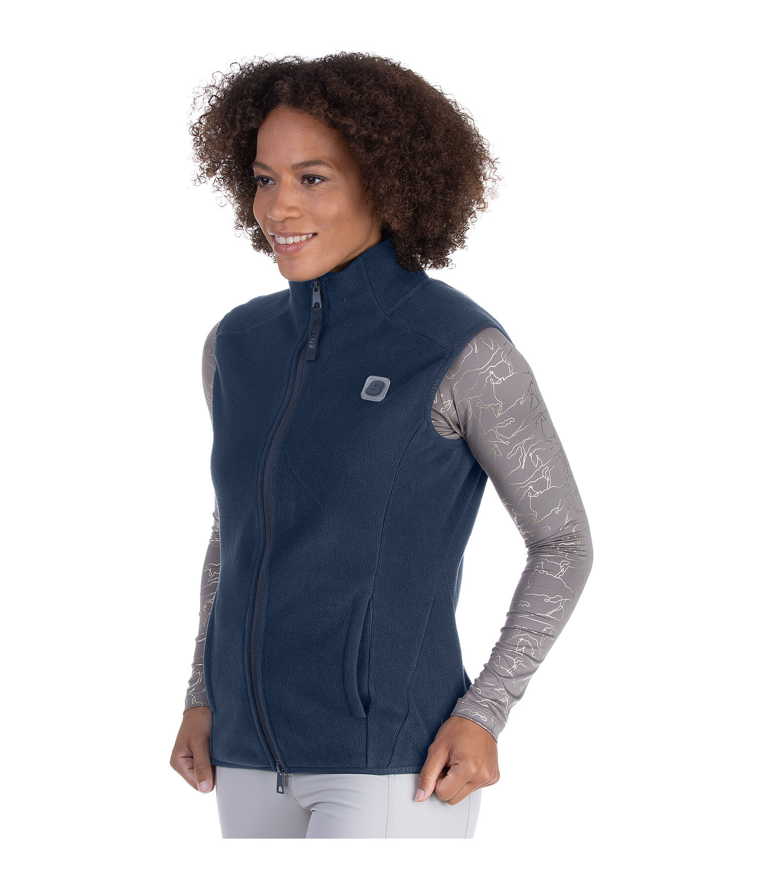 Gilet d'équitation basique en polaire, extra doux et chaud. Col montant. Coupe ajustée légèrement plus longue à l'arrière. Fermeture à glissière double sens avec protège-menton. 2 poches latérales. Bordure élastiquée avec inscription STEEDS sur les emmanchures et l'ourlet. Badge STEEDS sur la poitrine et broderie dans le dos. 100 % polyester.