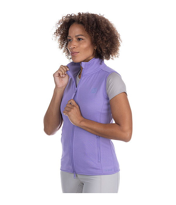 Gilet d'équitation en stretch Performance extensible dans 4 directions. Col montant. Matière respirante à séchage rapide. Fermeture à glissière bidirectionnelle avec sous-patte et protège-menton. Deux poches latérales zippées. Badge logo sur la poitrine. Intérieur doux et molletonné. 94 % polyester, 6 % élasthanne.