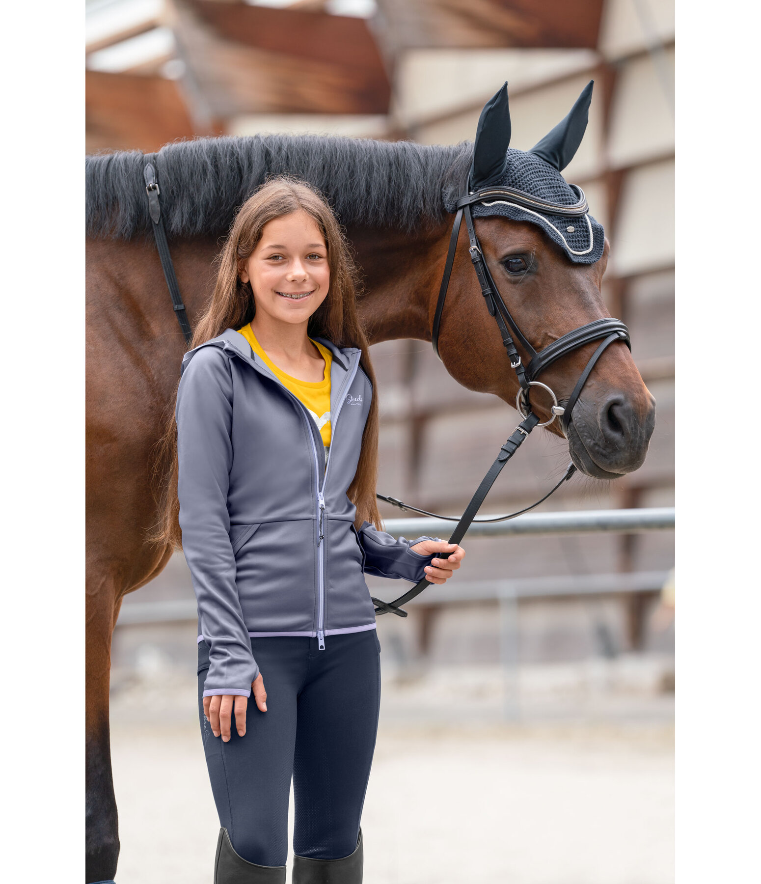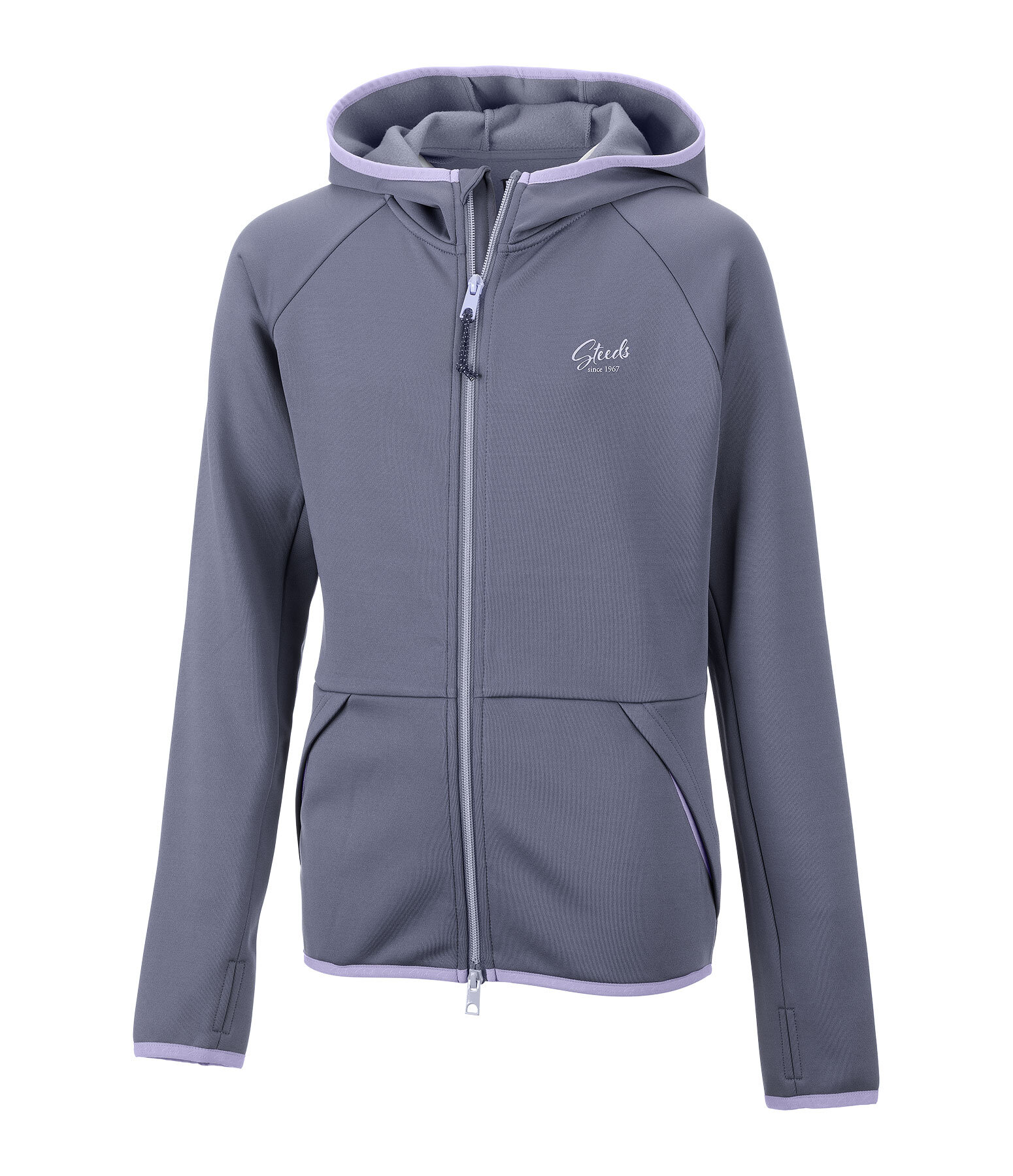 Veste Power-Stretch légère. Capuche haute. Matière respirante à séchage rapide. Intérieur doux. Fermeture à glissière bidirectionnelle avec protège-menton. Deux poches latérales. Passepoil élastiqué avec signature STEEDS sur le bas des manches, la capuche et l'ourlet. Passe-pouce. Logo STEEDS sur la poitrine. 94 % polyester, 6 % élasthanne.