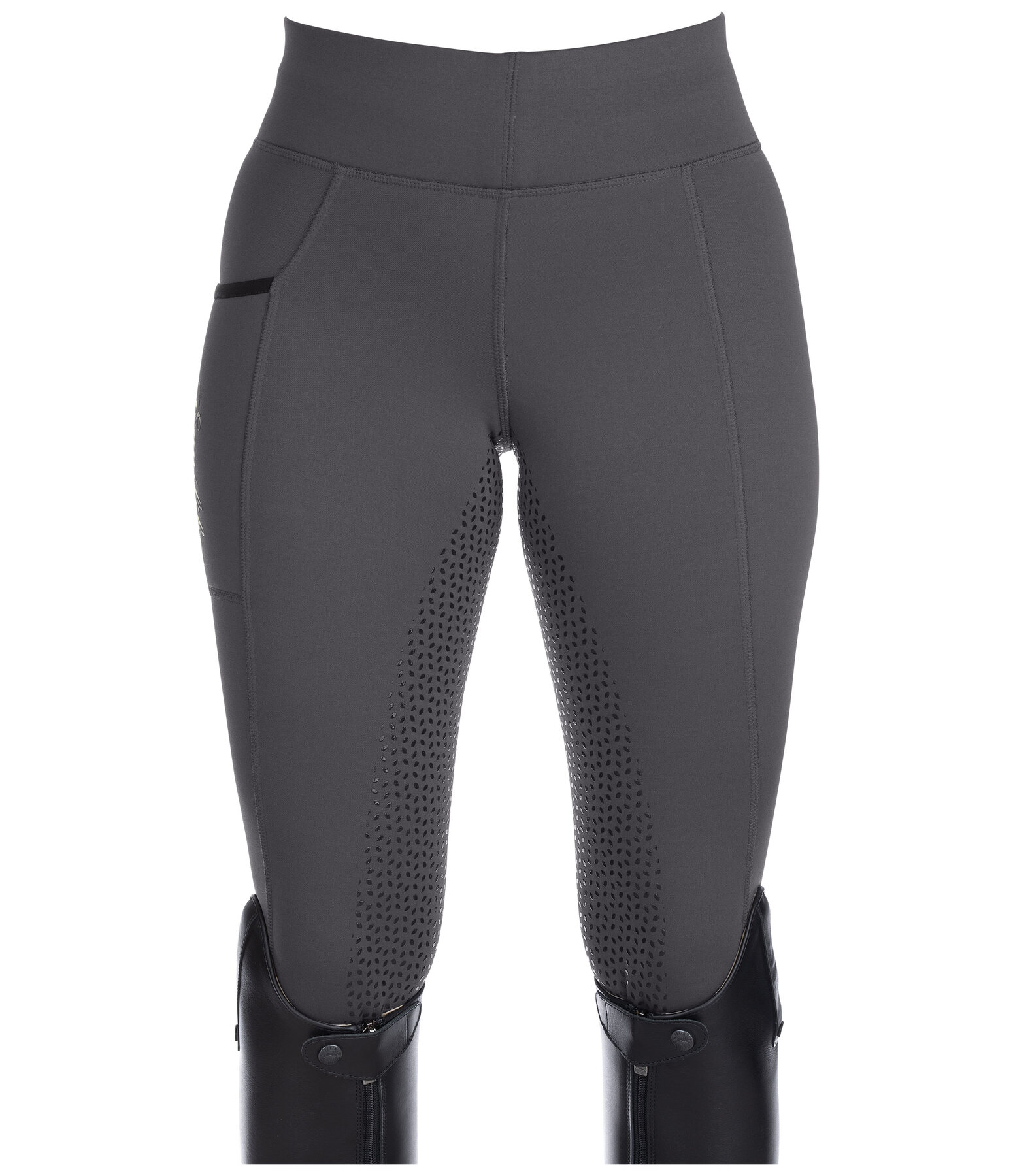 Legging d'équitation chaud pour les froides journées d'hiver ! Fond intégral grip en silicone. Matière stretch douce et souple, extensible dans 4 directions, pour un ajustement parfait. Intérieur confortable. Une poche latérale pour téléphone portable. Ceinture extra large avec poche zippée. 60 % polyester, 30 % polyamide, 10% élasthanne.
