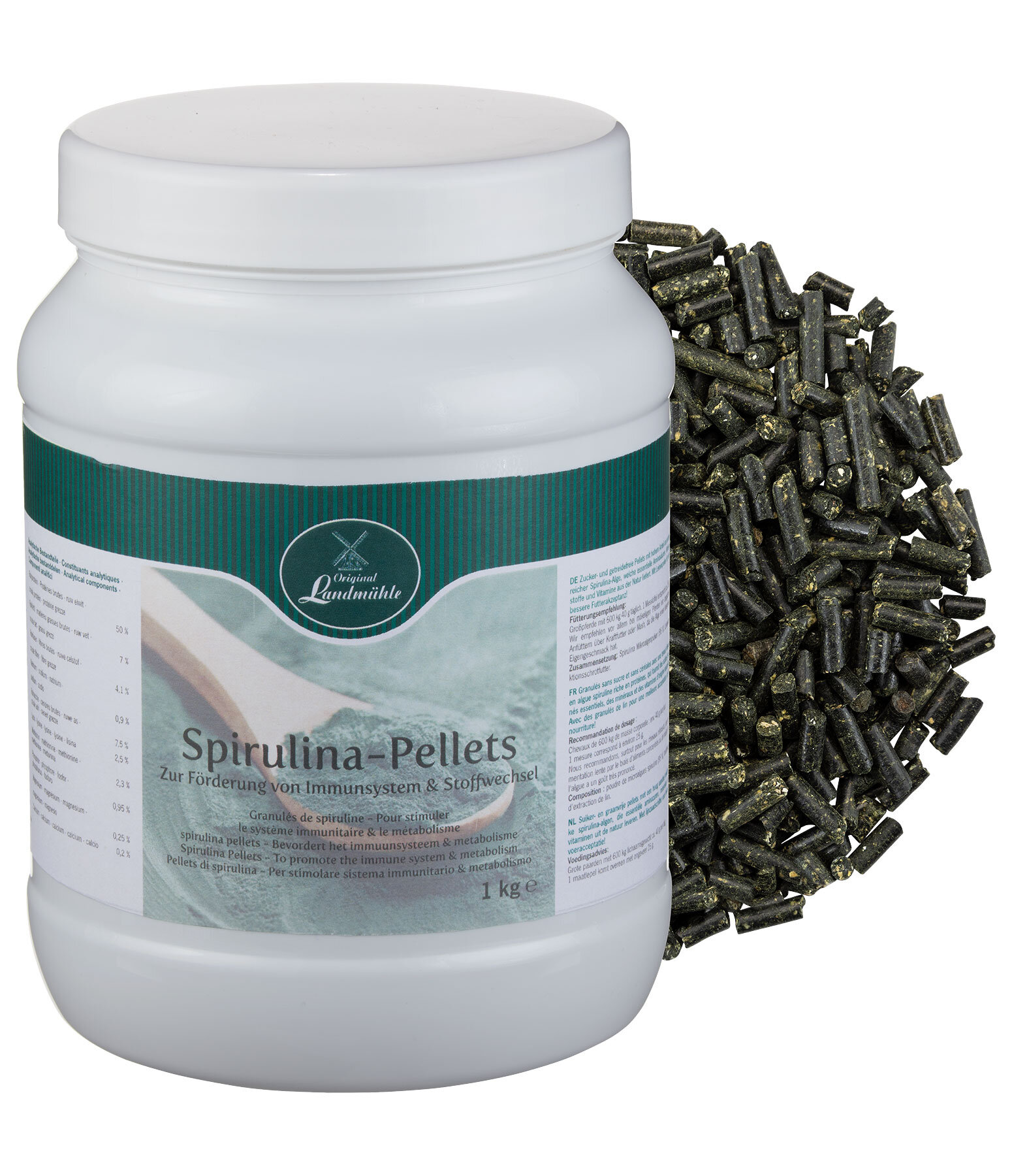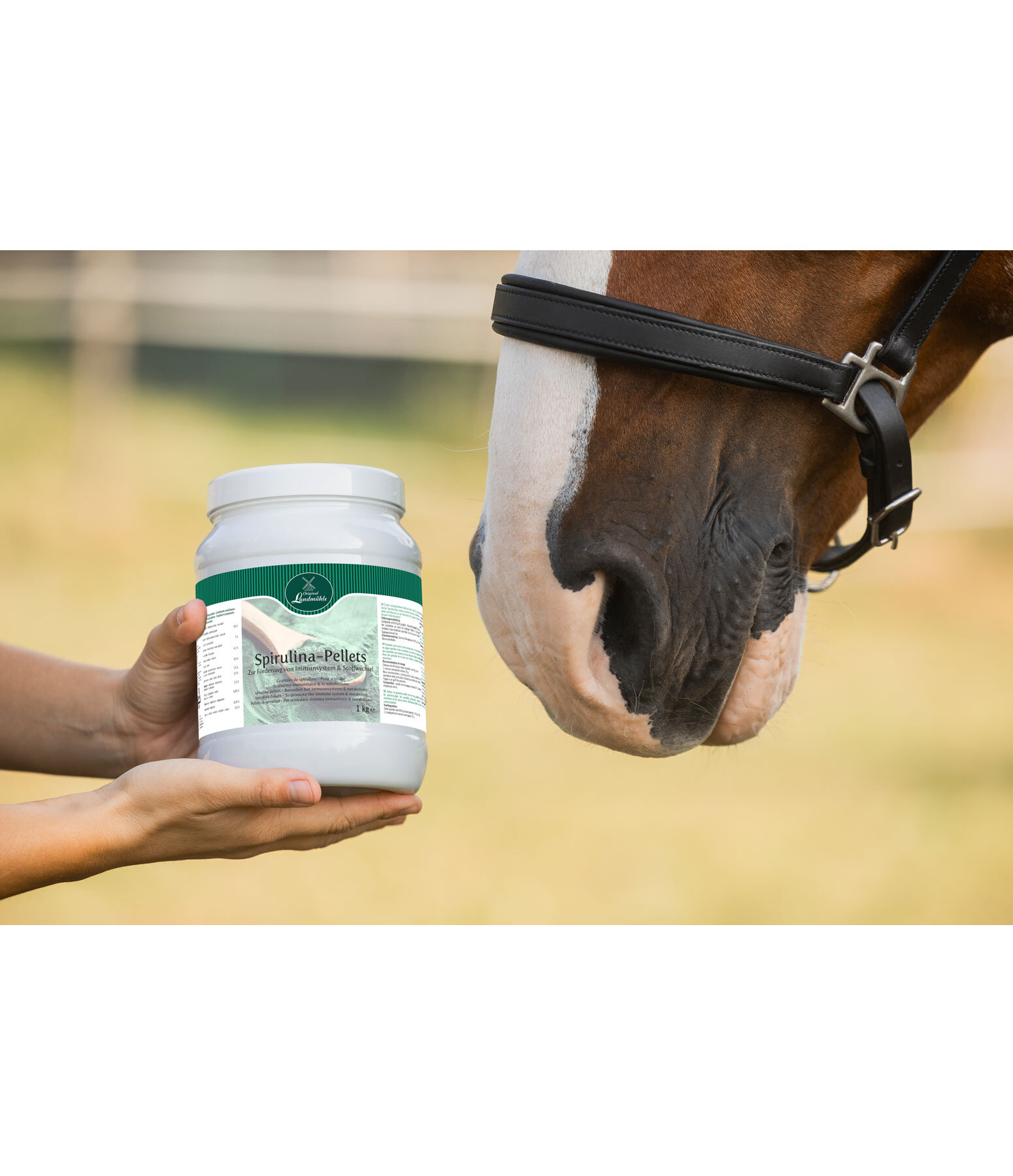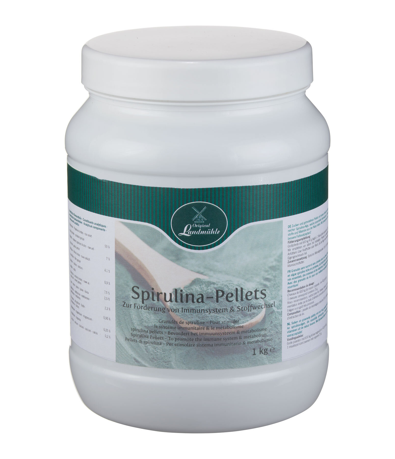 Nous recommandons de donner les granulés de spiruline Original Landmühle aux chevaux en perte d'état ou âgés qui ont besoin d'un apport supplémentaire en substances nutritives ou aux chevaux qui sont en train de développer leur musculature ou qui ont des problèmes pour faire du muscle en raison de maladies comme la myopathie par exemple. Lors de la mue saisonnière, cet aliment peut également être un complément judicieux à l'alimentation de base. La spiruline contenant près de 50 % de protéines, ce produit est déconseillé aux chevaux qui ont un régime pauvre en protéines.