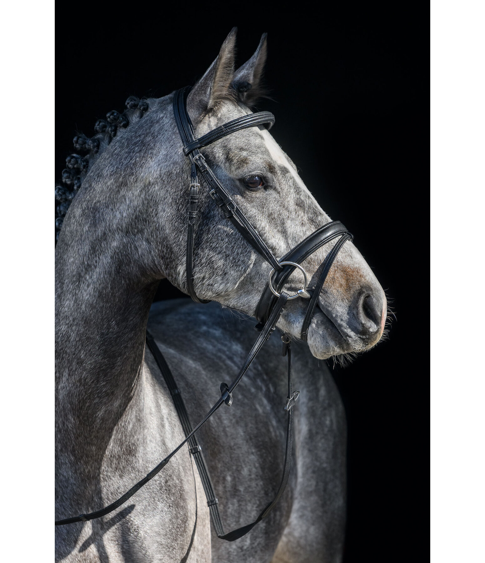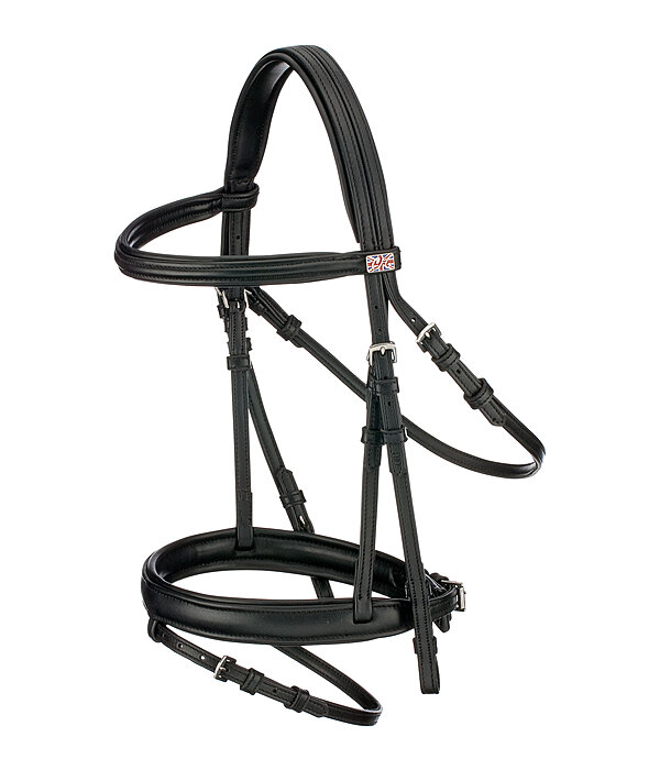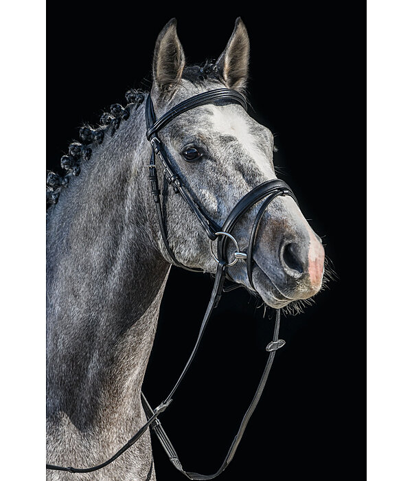 Bridon classique avec muserolle française combinée CLARIDGE HOUSE, fabriqué en synthétique particulièrement doux. Pour ce bridon, nous avons délibérément renoncé au cuir animal. Le synthétique durable offre une excellente possibilité à tous ceux qui souhaitent consciemment utiliser moins de produits d'origine animale. Têtière et muserolle avec doublure douce confortable. Possibilité de réglage optimale des deux côtés pour une adaptation individuelle à la tête du cheval. Le bridon en synthétique Animal Friendly est vendu avec des rênes, sans mors. La bouclerie argentée apporte la touche finale.