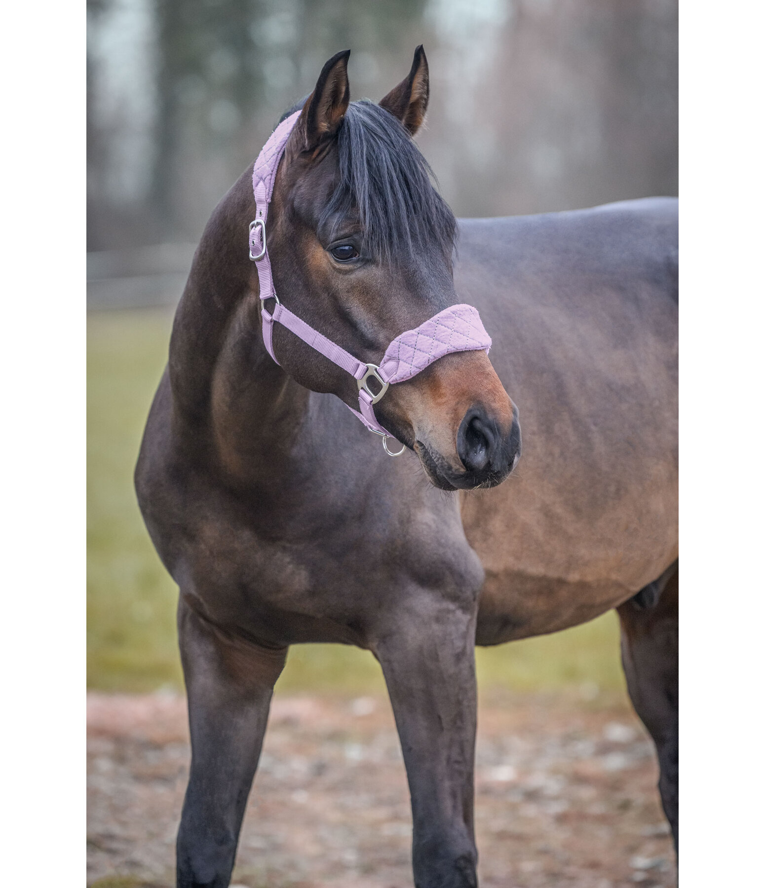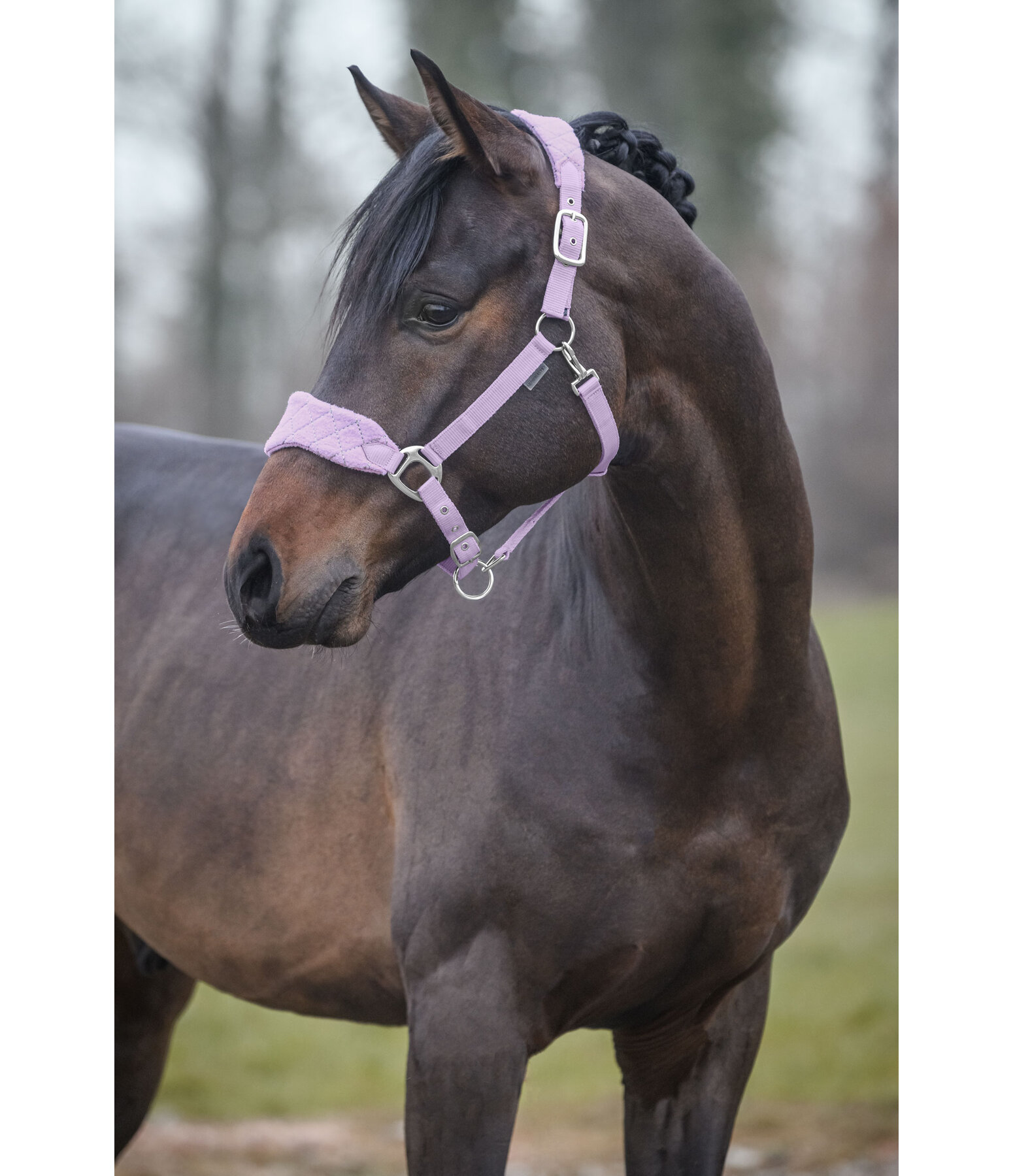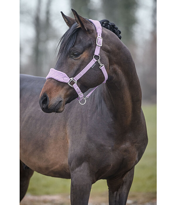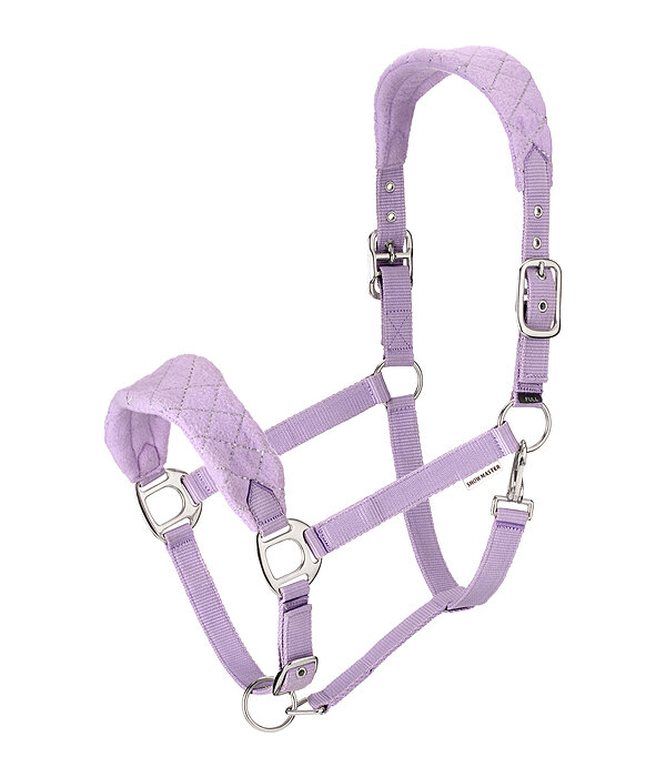 Licol confortable. Doublure en polaire douce au niveau de la têtière et de la muserolle. Son atout : une fonçure décorative avec fil scintillant. Têtière doublement réglable et muserolle réglable. Bouclerie de couleur assortie. Licol 100 % polypropylène, polaire 100 % polyester.