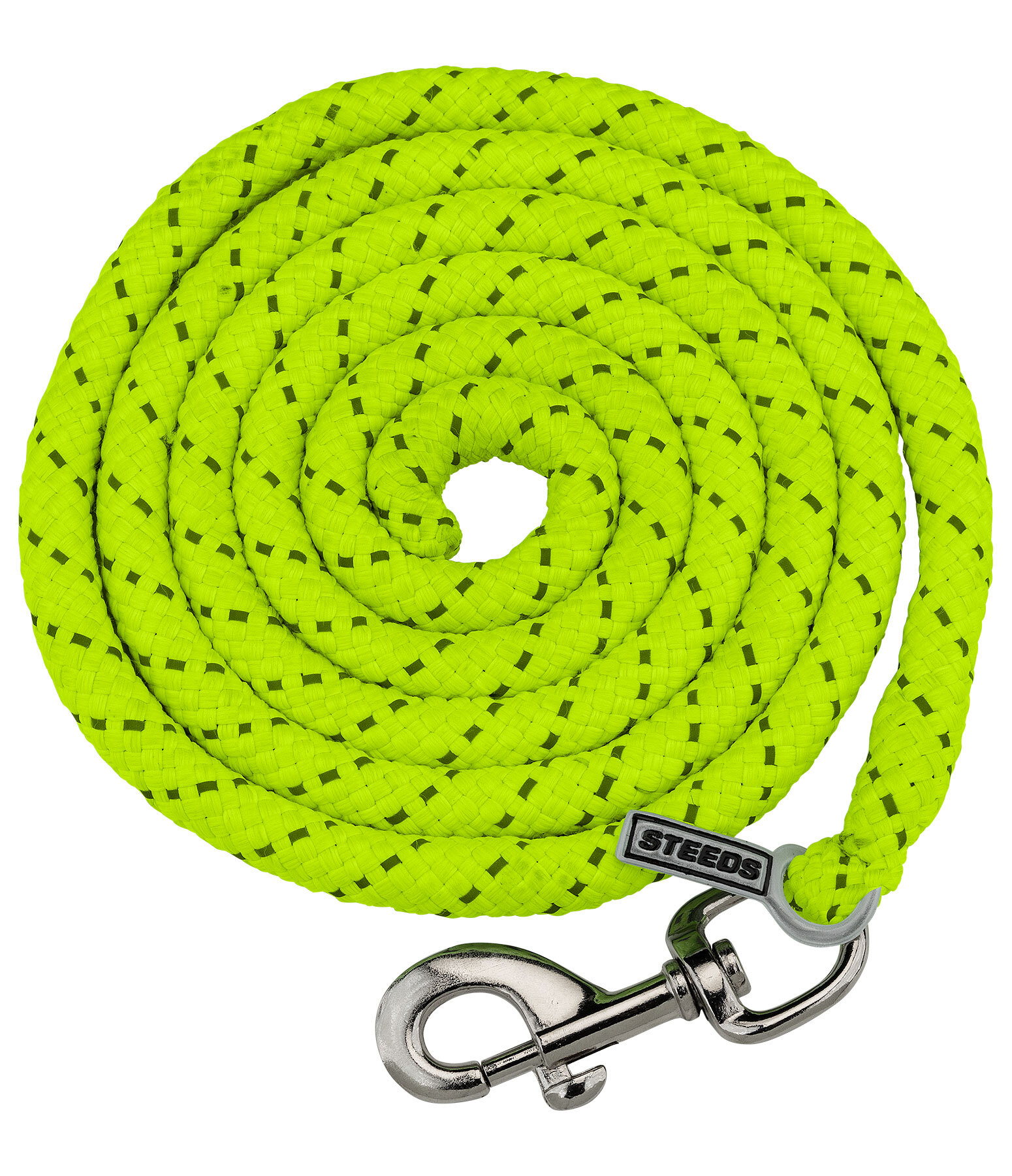 Longe avec fil réfléchissant pour une meilleure visibilité dans l'obscurité: Mousqueton simple argenté. Assortie au licol réfléchissant STEEDS Shiny 340 192. 2 m. 100 % polyester.