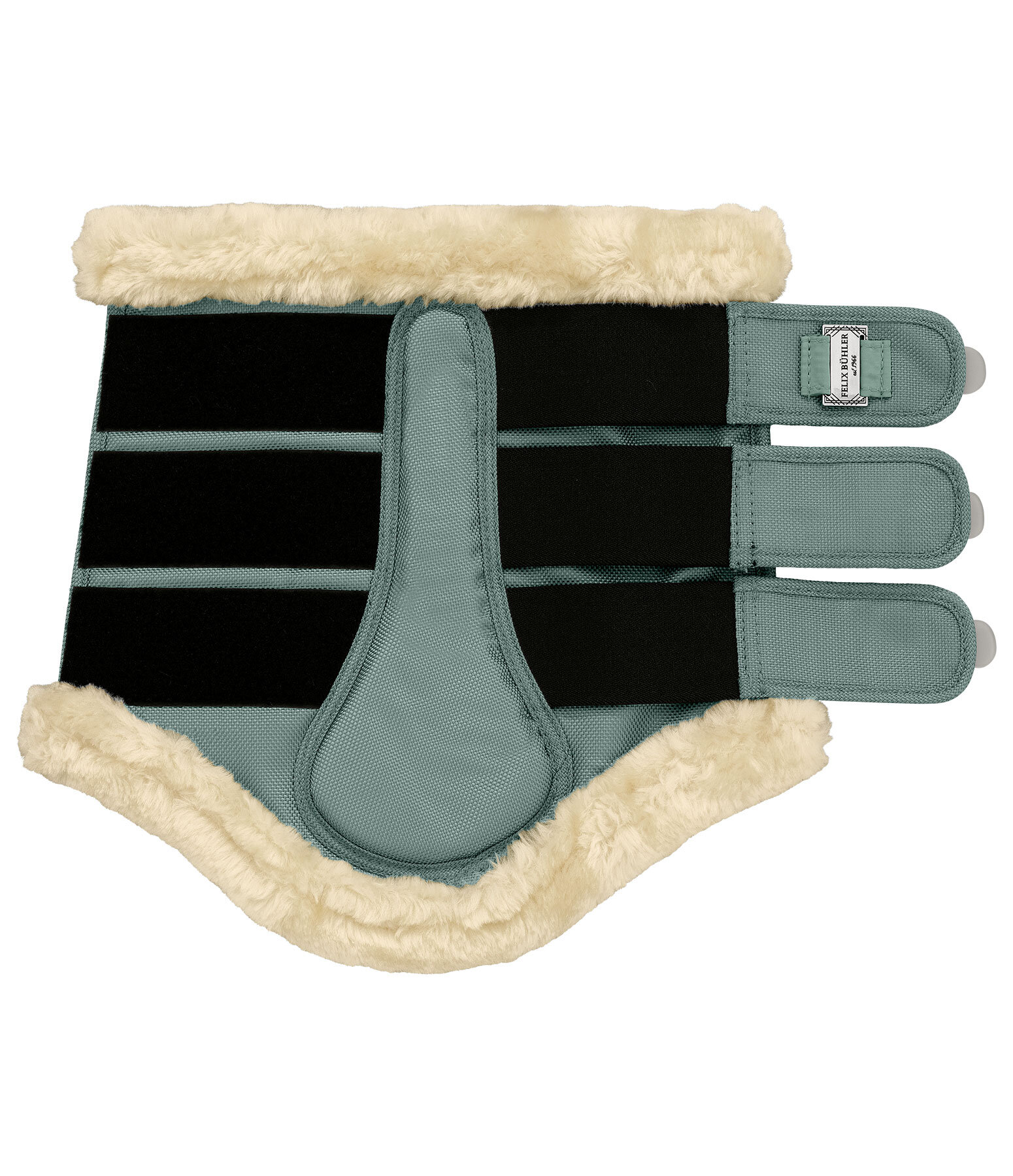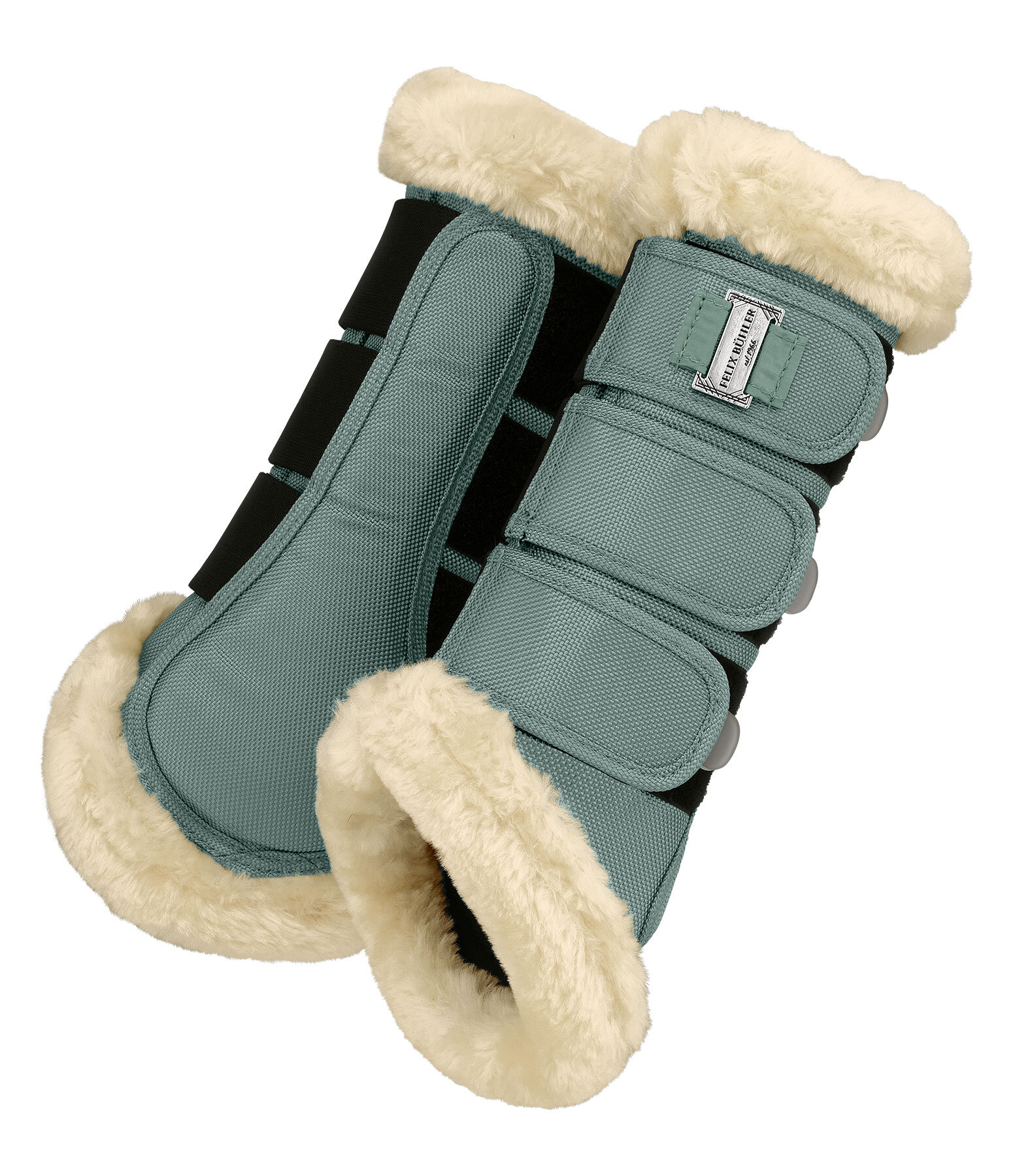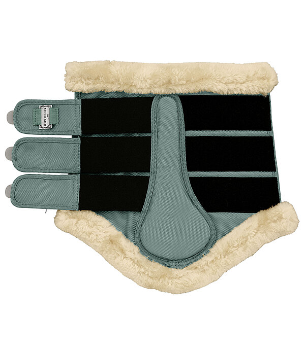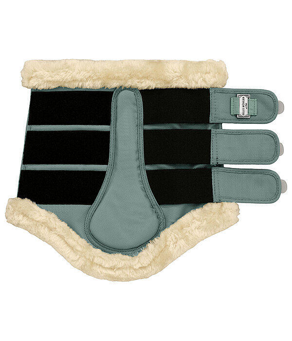 Élégantes guêtres de dressage avec bordure en polaire Teddy douce. Doublure moelleuse en caoutchouc chloroprène pour une protection optimale contre les impacts. Revêtement anti-salissures en matière résistante 600 deniers. Forme anatomique, pattes auto-agrippantes avec empiècements élastiques pour un ajustement parfait. Plaque métallique avec logo Felix Bühler. Doublure intérieure 100 % caoutchouc chloroprène, revêtement 100 % polyester. Vendues par paire.