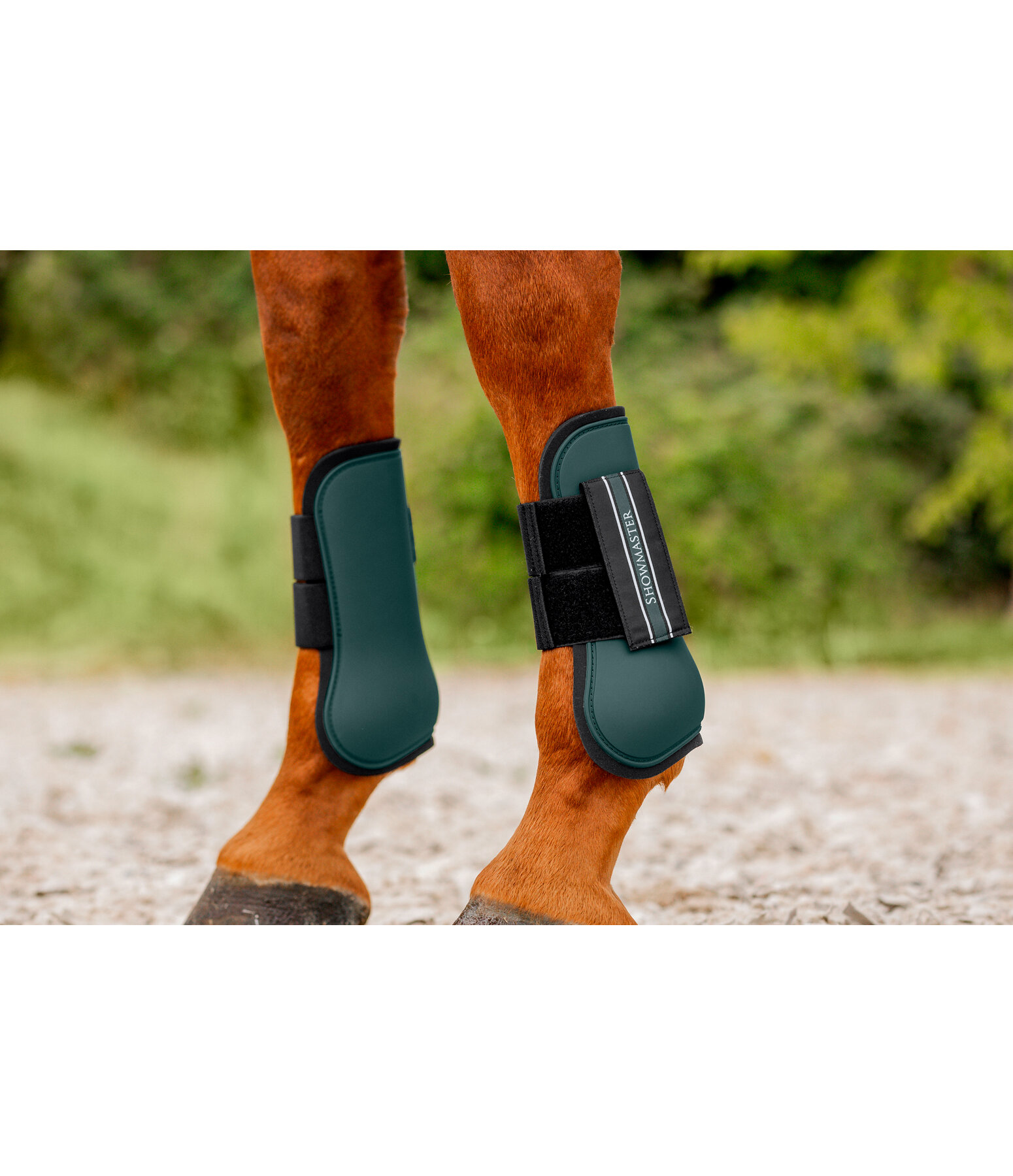 Guêtres anatomiques à coque avec doublure intérieure en caoutchouc chloroprène doux. Deux larges pattes auto-agrippantes élastiquées pour un ajustement optimal et un maintien sûr. Vendues par paire.