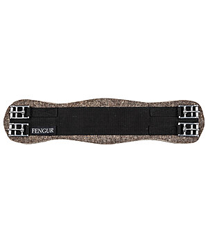 Une sangle courte doit être correctement ajustée, car la pression ponctuelle peut être plus forte sur les sangles courtes que sur les sangles longues. Pour déterminer la bonne longueur de sangle pour ton cheval, mesure du bord inférieur du tapis de selle d'un côté à l'autre. De ce résultat, déduis 30 cm. Pour déterminer la longueur finale de la sangle courte, arrondis le résultat final à la longueur supérieure.