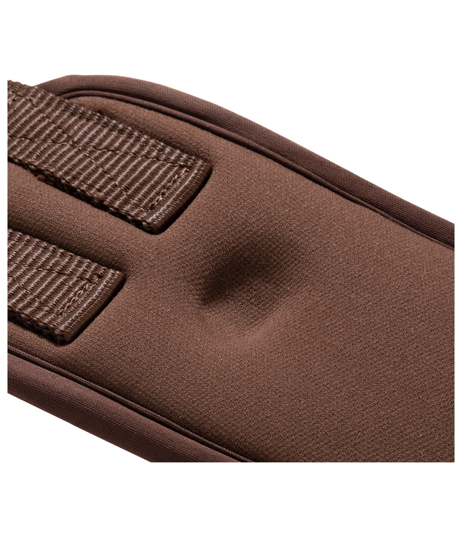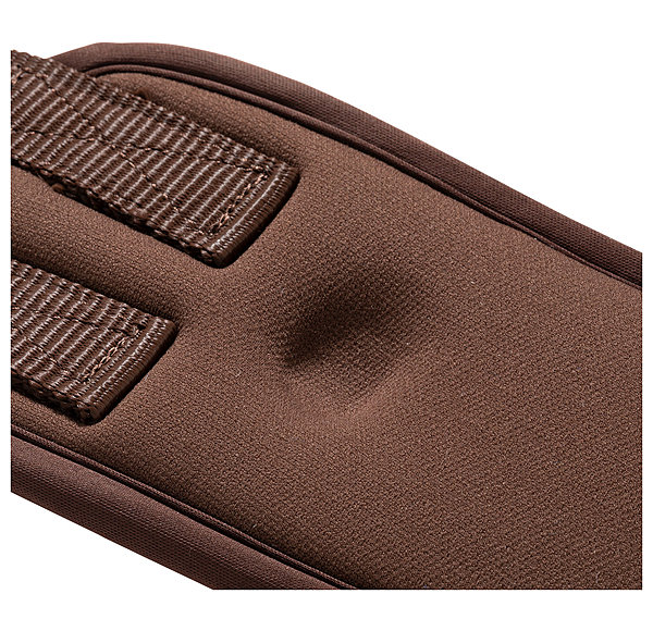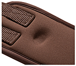 Sangle en mousse à mémoire de forme douce et absorbant les chocs, qui cède sous la pression puis revient à sa position initiale. Housse en caoutchouc chloroprène durable. Coupe anatomique avec large surface de contact et anneau central en D pour fixer facilement un enrênement. Avec empiècements élastiques d'un côté. Boucles à rouleau en acier inoxydable. Largeur 8,5 à 10,5 cm.