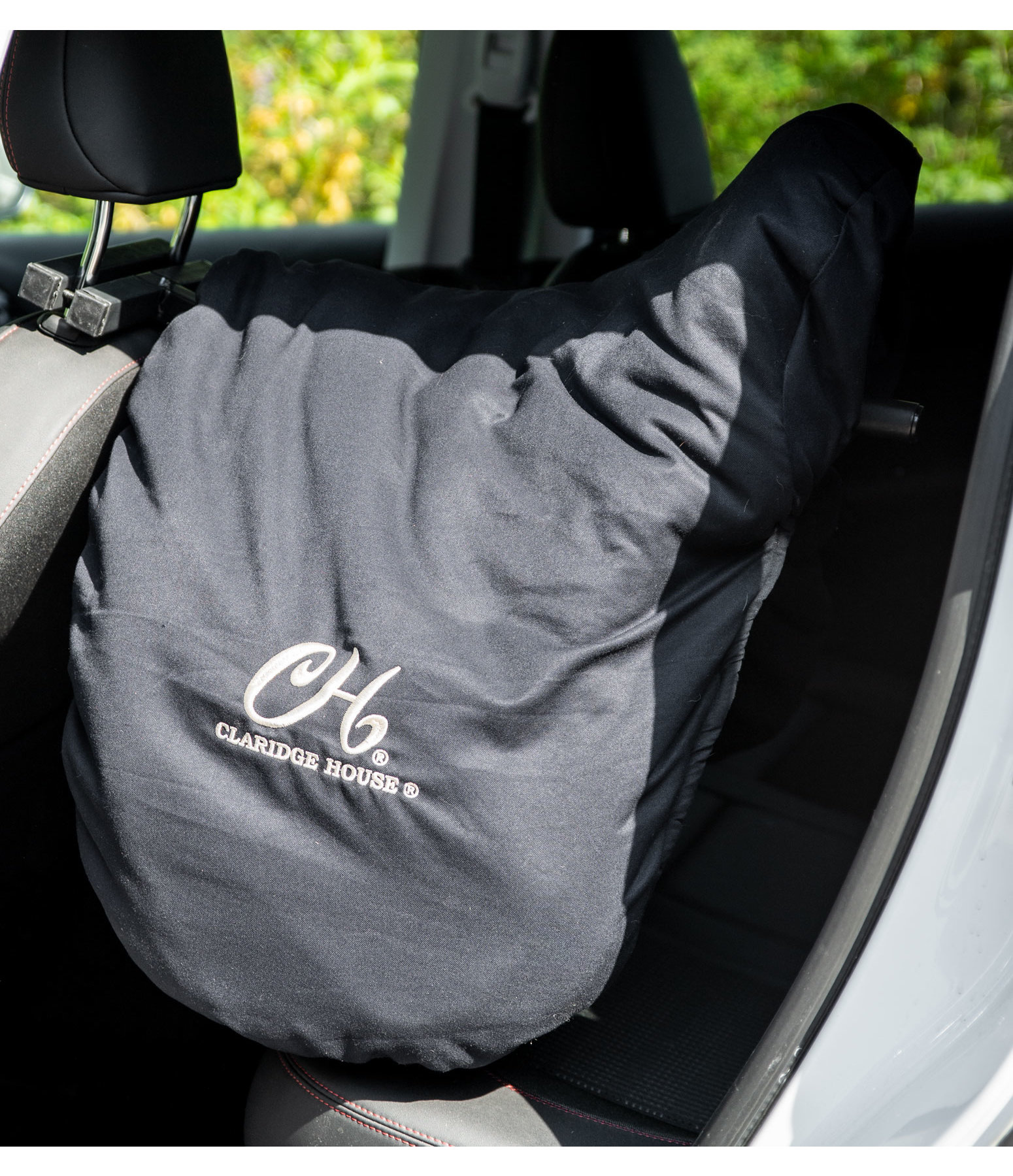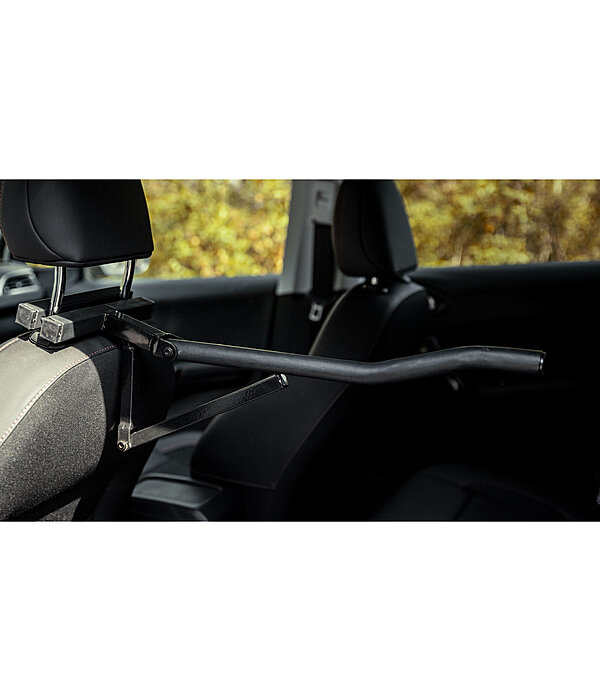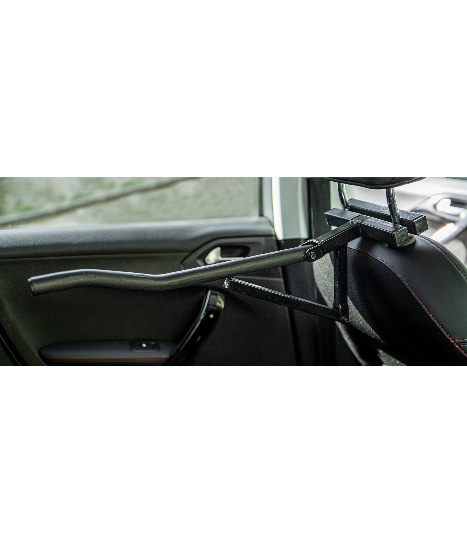 Porte-selle transportable pour voiture. Peut être facilement fixé au repose-tête ou enlevé grâce à un système de vis.