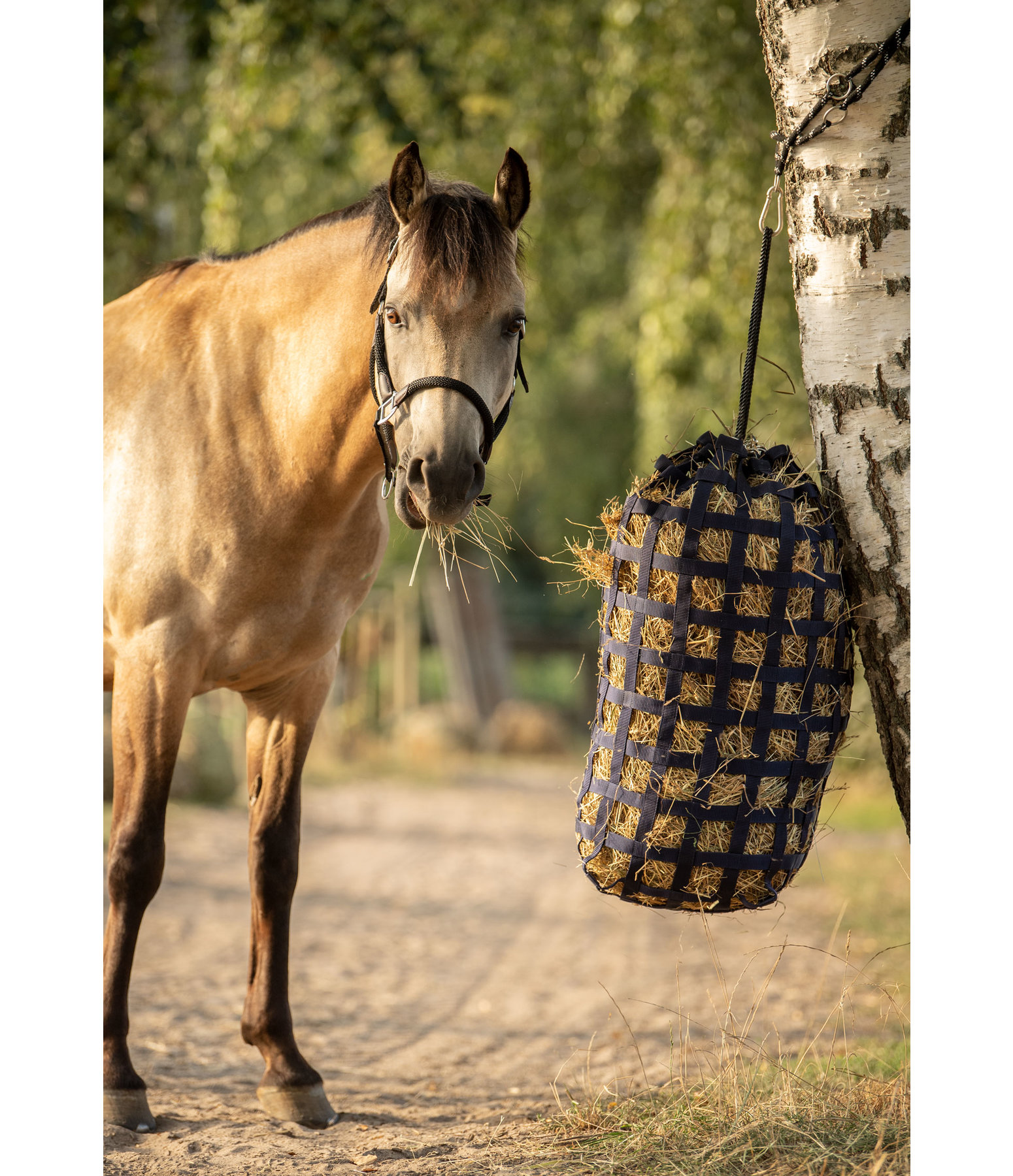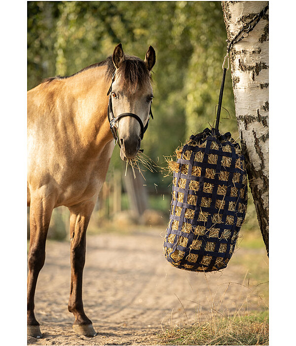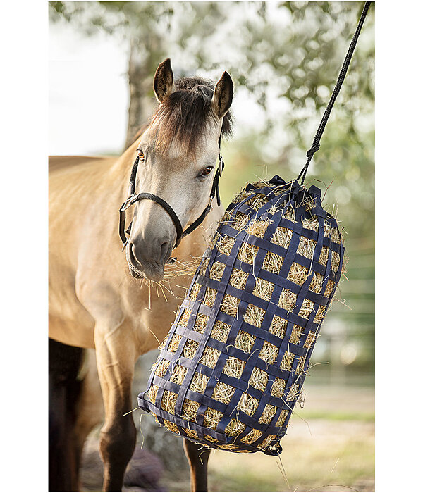 Filet à foin solide et durable en bandes cousues. Largeur des mailles 5 x 5 cm. Contenance jusqu'à 9 kg. 100 % polypropylène. 60 x 90 cm.