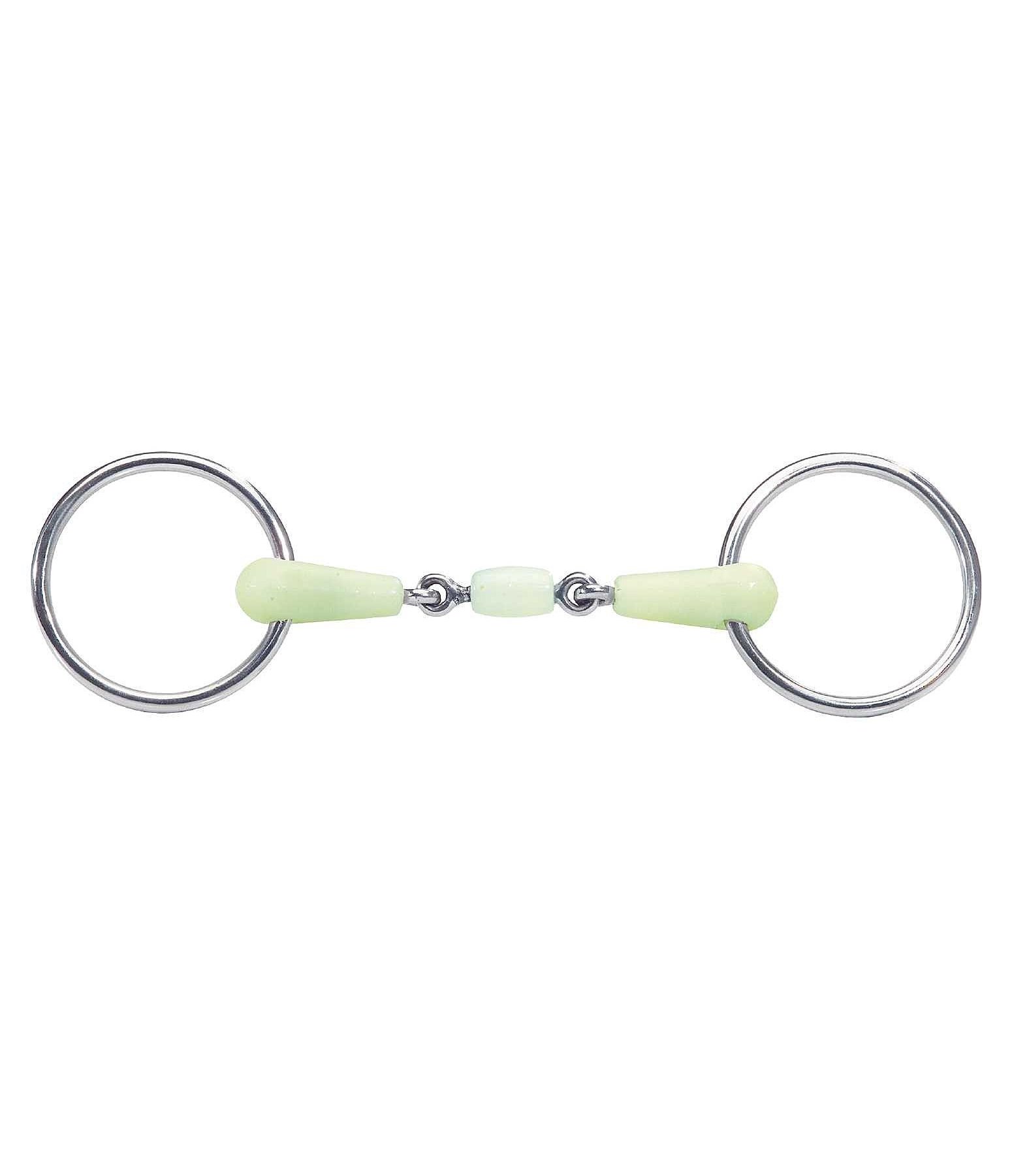 Grâce à sa partie centrale, ce mors à double brisure permet une meilleure répartition de la pression dans la bouche et évite tout effet "casse-noisette". Épaisseur 19 mm.