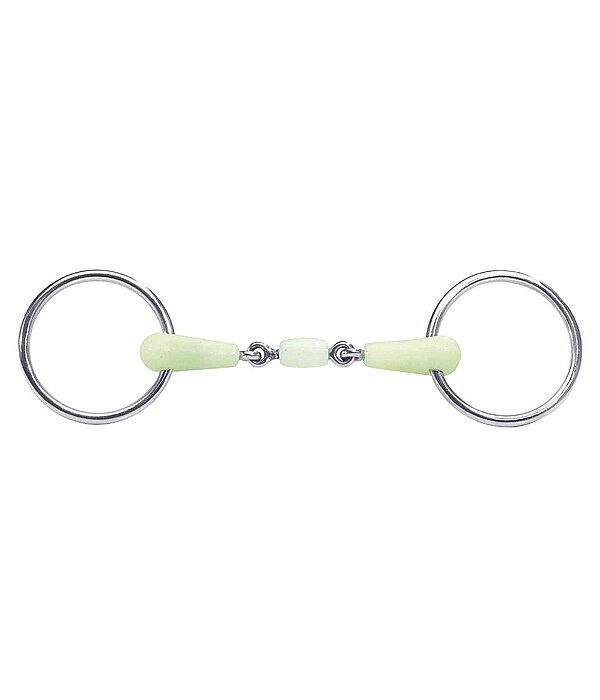 La matière plastique est agréable en bouche, douce et extensible. Associé au goût durable de pomme, ce mors encourage la mastication du cheval. Le cheval "cherche" le mors.