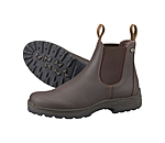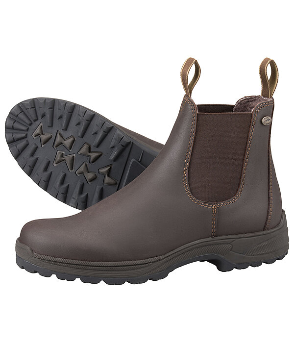 Bottines élégantes et robustes. Cuir gras haut de gamme. Doublure intérieure chaude 100 % laine de mouton. Soufflet élastiqué de chaque côté de la bottine pour faciliter l'enfilage et le retrait. Semelle crantée en caoutchouc robuste et talon cavalier pour une adhérence optimale sur les sols glissants et dans les étriers. La semelle intérieure amortissante offre le confort nécessaire. Fabriquées au Portugal.