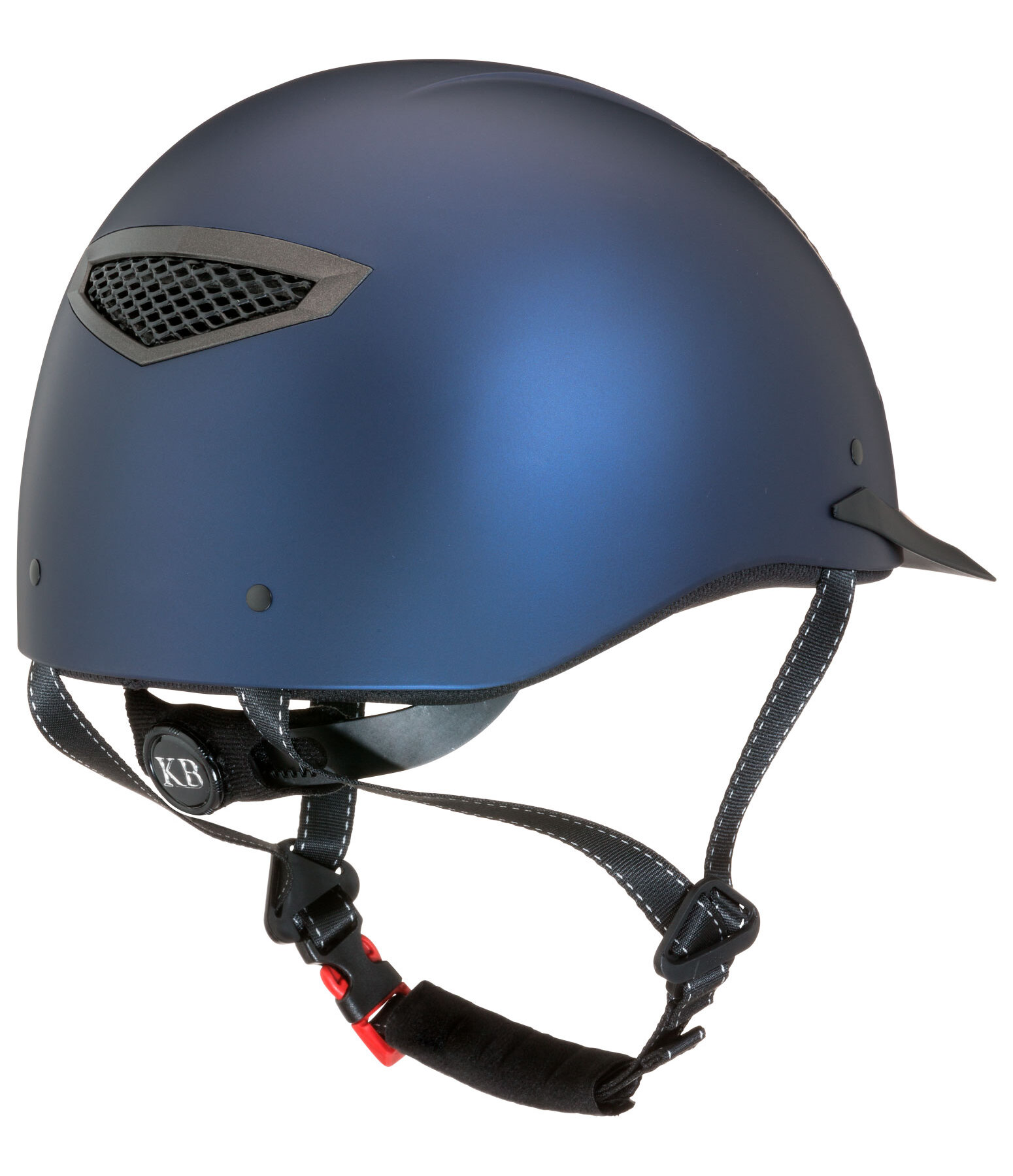 Casque d'équitation KNIGHTSBRIDGE haut de gamme pour une sécurité maximale. Les fentes d'aération à l'avant et à l'arrière du casque sont protégées par une grille métallique solide et assurent une ventilation optimale. Molette de réglage à l'arrière et deux doublures différentes fournies pour une parfaite adaptation à forme de la tête (ronde ou ovale). La visière du casque est fabriquée en plastique souple. Jugulaire doublée de polaire douce. Certifié selon la norme EN1384:2023.