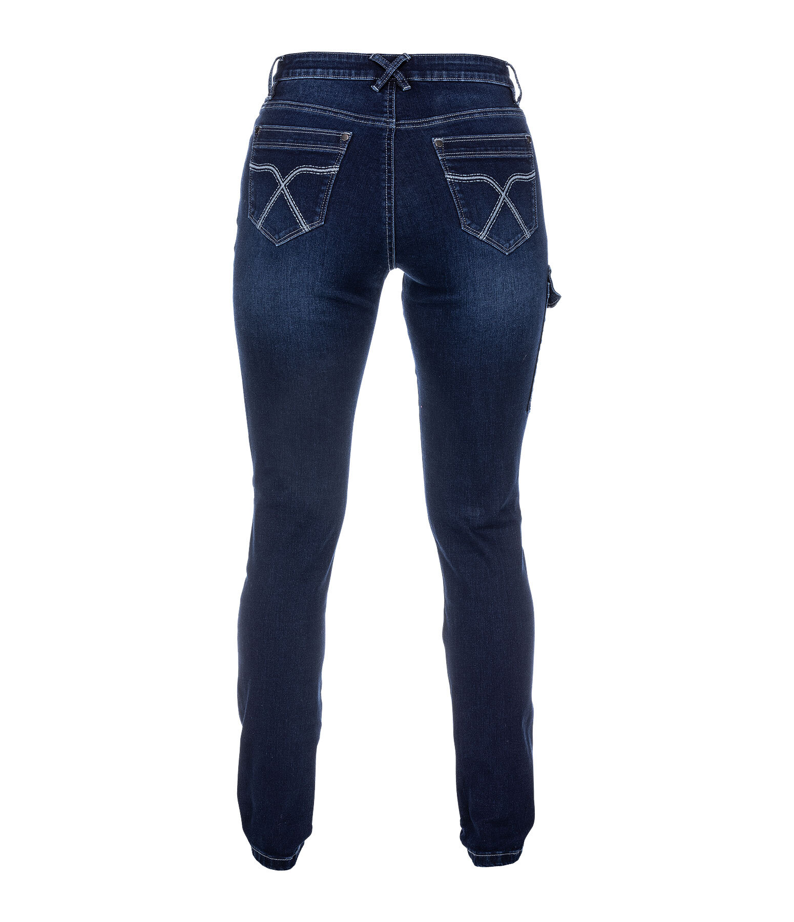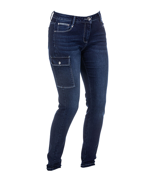 Jeans foncé confortable. Coupe straight et taille mi-haute. Poche cargo sur la cuisse droite. Matière légèrement stretch pour un confort optimal. Logo brodé en relief sur les poches arrière. 79 % coton, 19 % polyester, 2 % élasthanne.