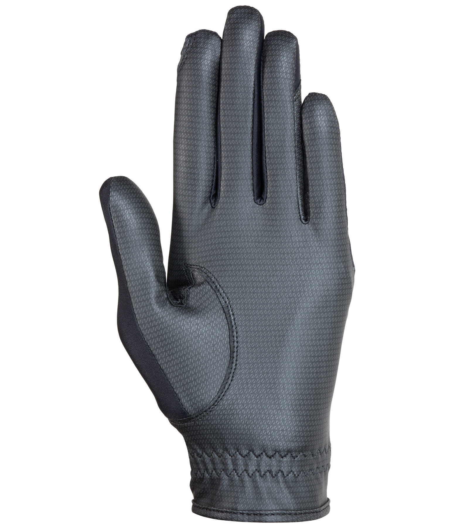 Le modèle MUENSTER est un gant d'équitation qui répond aux attentes de notre époque. Ici, ROECKL SPORTS a tout misé sur un dos de la main en Vita Lycra durable et sur une paume en ROECK-AIR micro perforé. Le lycra respirant, particulièrement élastique, a été fabriqué avec le fil ECONYL® constitué de rebuts de nylon recyclés. La matière respirante, élastique et anti-dérapante ROECK-AIR est non seulement très confortable et légère, mais, grâce à son importante tacticité, permet aussi un travail très fin avec la bouche du cheval. Cette combinaison réussie de matières associée à la coupe COMFORT-CUT de ROECKL assurent un ajustement parfait et un confort maximal même en été. Le design est aussi très réussi : le gant MUENSTER a un look intemporel, élégant et très tendance. L'aspect sportif est assuré par le logo ROECKL sur le long de la main. La fermeture pratique avec le logo stylisé Roeckl assure un maintien confortable autour du poignet.Compatible avec écrans tactiles. Dos de la main 78 % polyamide, 22 % élasthanne. Paume 100 % Polyamide.
