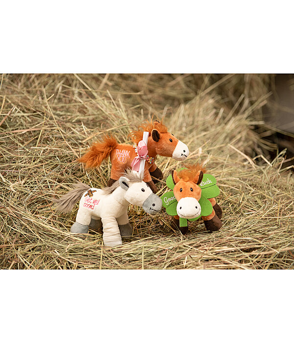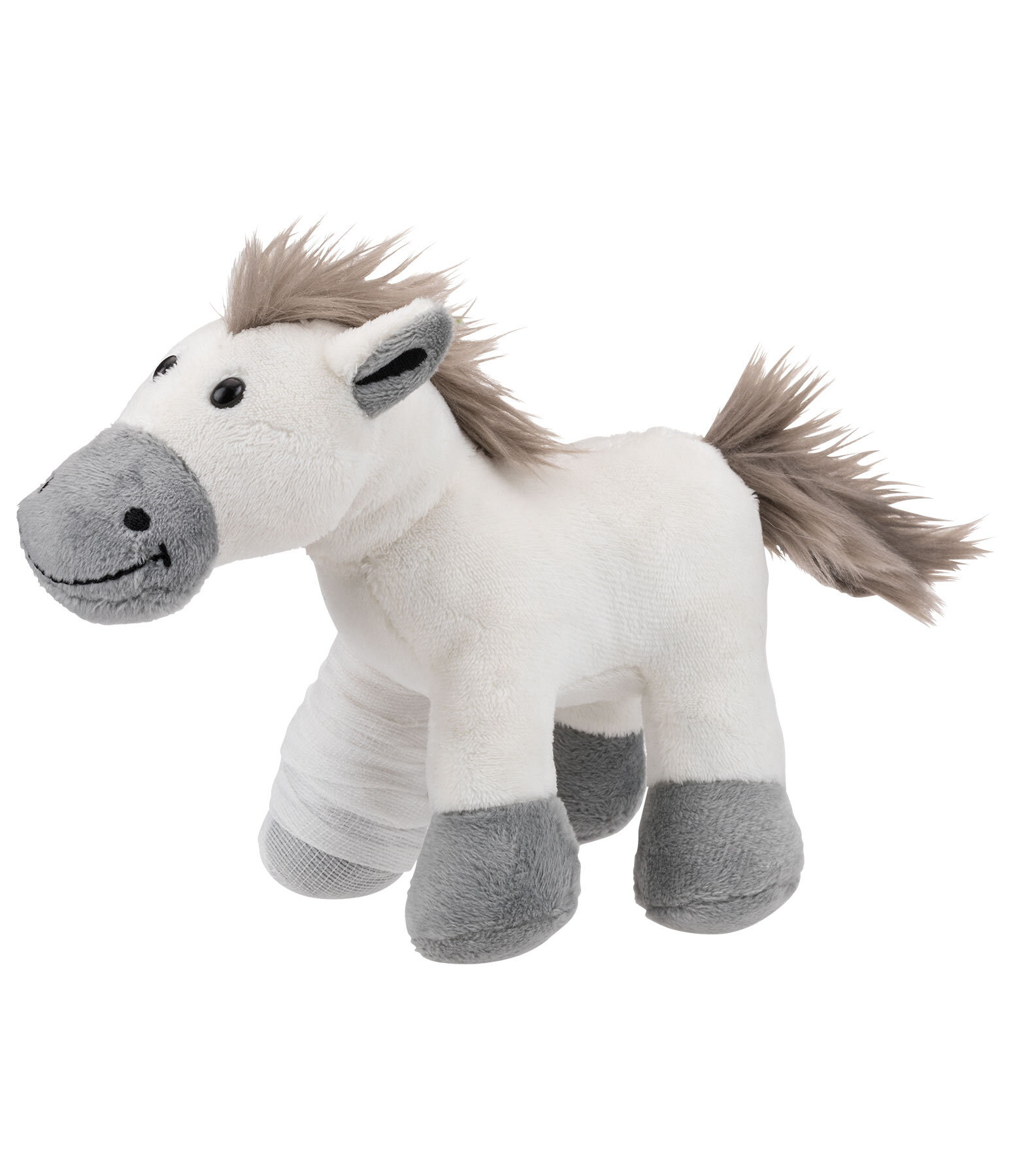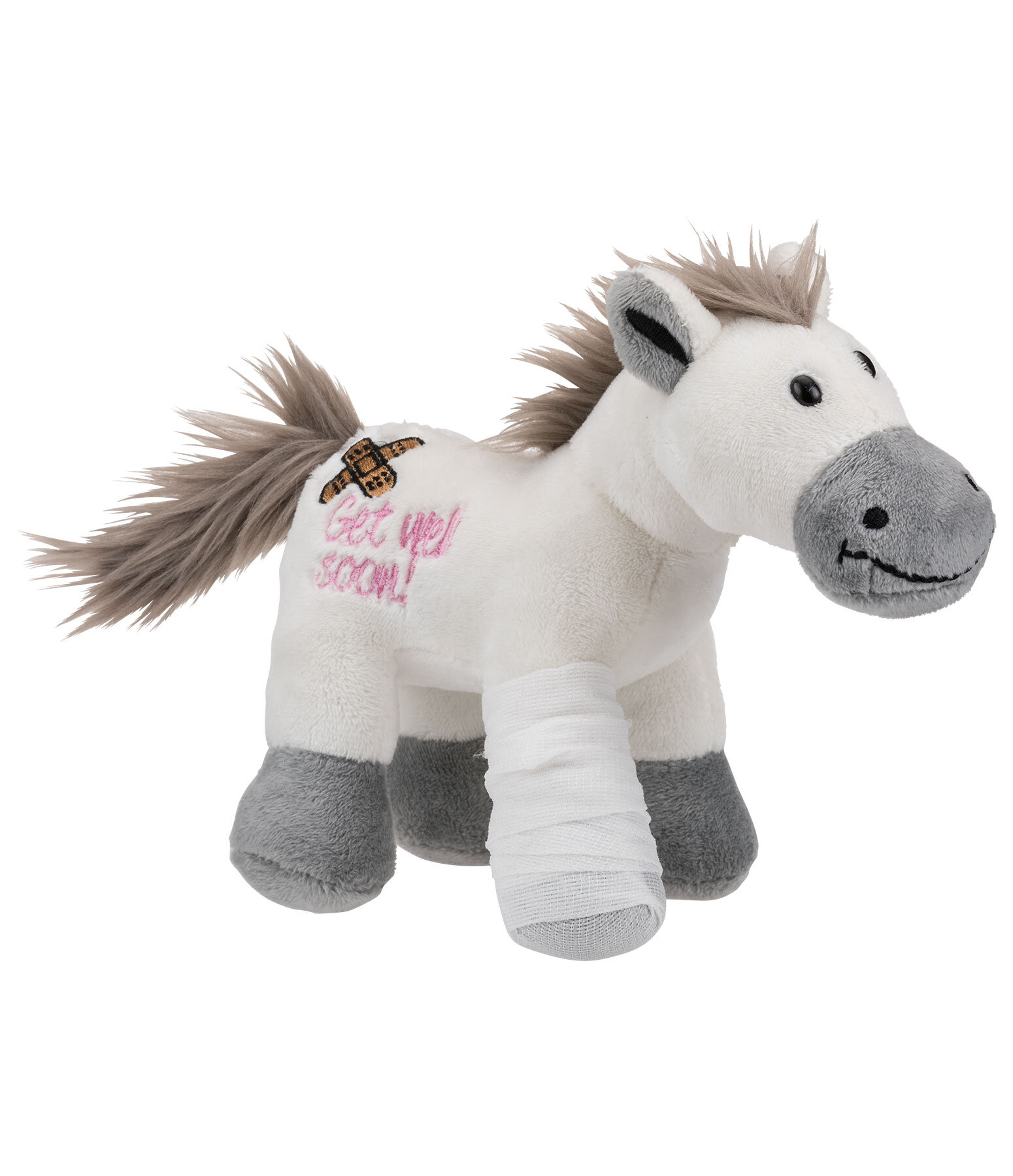 Petit Horsly avec pansement et jambe bandée comme souhait de rétablissement. À collectionner, à offrir ou comme décoration pour l'écurie, la maison ou la voiture. Hauteur 15 cm, mesure au garrot : 12 cm.