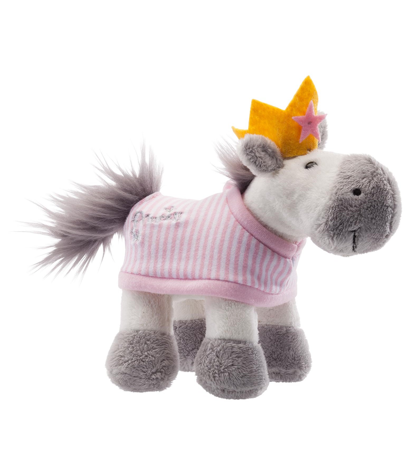 Cette élégante jument en peluche toute douce dans sa robe royale ne charme pas uniquement les petites filles mais fait également tourner la tête des petits garçons. Une adorable dame à collectionner, à offrir ou à exposer à l'écurie, à la maison ou dans la voiture. Hauteur 15 cm, hauteur au garrot 12 cm.