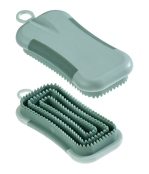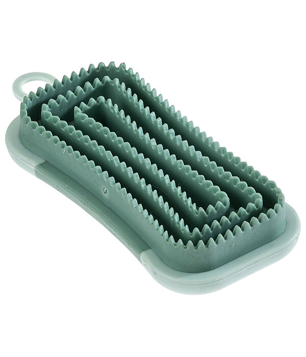 Étrille particulièrement maniable en caoutchouc doux, idéale pour les parties sensibles telles que la tête, la nuque et les membres. Bonne tenue en main. Ainsi, les poils qui démangent ou qui sont collés sur la tête ou derrière les oreilles par la sueur après le travail peuvent être facilement retirés, de même que les poils morts de la robe. Avec effet de massage apaisant pour le cheval ! 12 X 5,5 cm