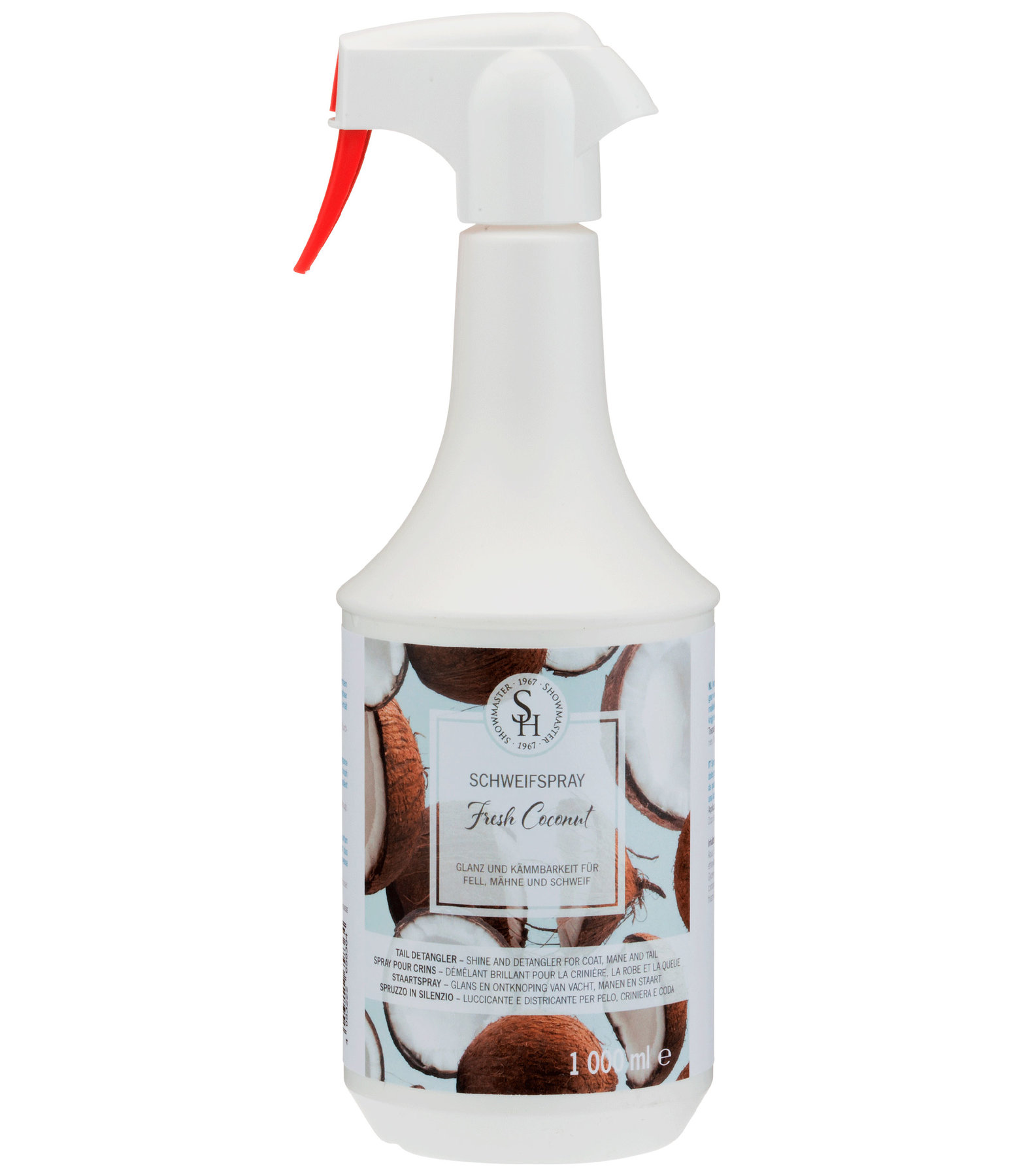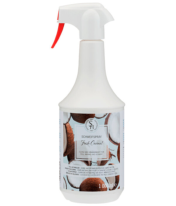 Spray à crins au parfum frais de noix de coco tropicale pour le soin de la crinière, de la queue et de la robe. Les crins sont plus faciles à brosser et parfaitement démêlés. Confère à la robe une brillance soyeuse et une plus longue protection contre la poussière. Pendant toute la période d'effet du produit, la crinière et la robe de votre cheval seront brillants et soignés. Un lavage préalable n'est pas nécessaire, le démêlage de la crinière et de la queue doit se faire immédiatement après l'utilisation du produit. En outre, la perte des crins lors du brossage est réduite de manière significative. Les tâches d'urine ou d'herbe une fois sèches peuvent disparaître facilement avec le brossage. En plus de l'utilité cosmétique du spray pour crins SHOWMASTER, il existe un autre avantage décisif pour votre cheval : une queue bien démêlée chasse beaucoup mieux les insectes qu'une queue mince et emmêlée. Également intéressant pour les juments en chaleur pour éviter que les longs crins ne les gênent pendant cette période. Le spray crinière et queue est doux pour la peau et n'obstrue pas les pores - peau et robe sont soigneusement entretenues.
