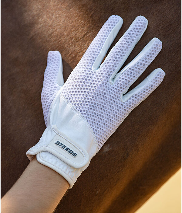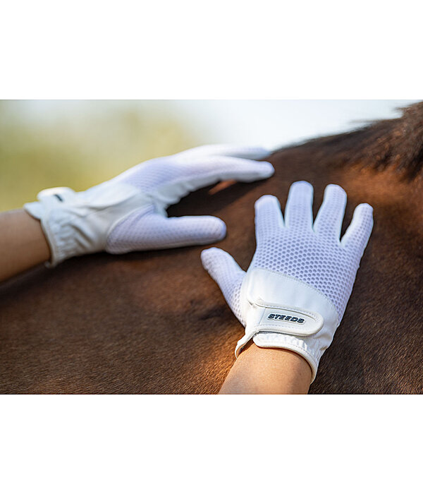 Gants d'équitation légers et extensibles en tissu structuré. Élastiqués au niveau des poignets avec patte auto-agrippante. Matière respirante. Dessus 82 % nylon, 18 % élasthanne, paume 75 % polyester, 25 % polyuréthane.
