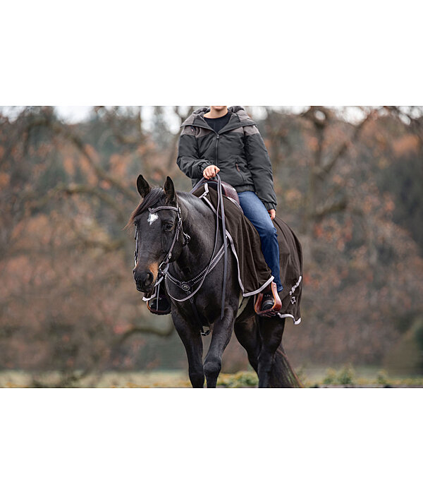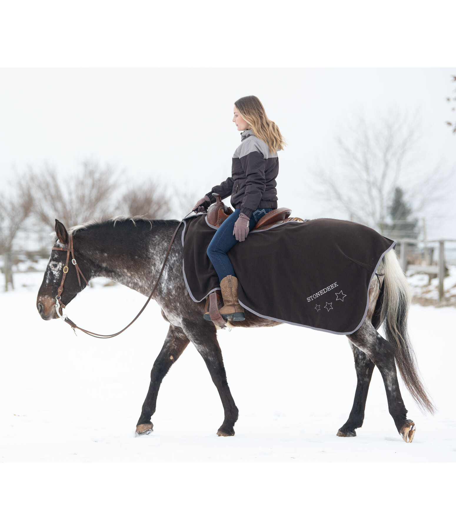 Couvre-reins basique pour selles western. Matière polaire douce, technique et chaude ornée d'une jolie broderie. Fermeture simple par patte auto-agrippante. 100 % polyester