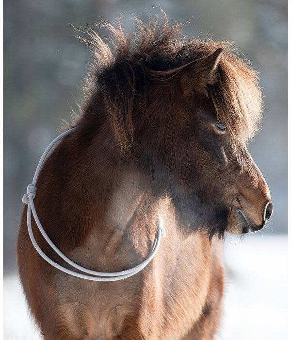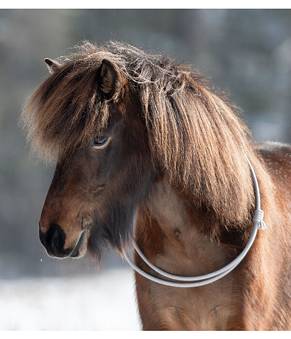 Collier d'encolure en coton, qui tient agréablement dans la main. Diamètre réglable de 1,15 m à 2,10 m. À utiliser seulement en manège ou dans des carrières clôturées.