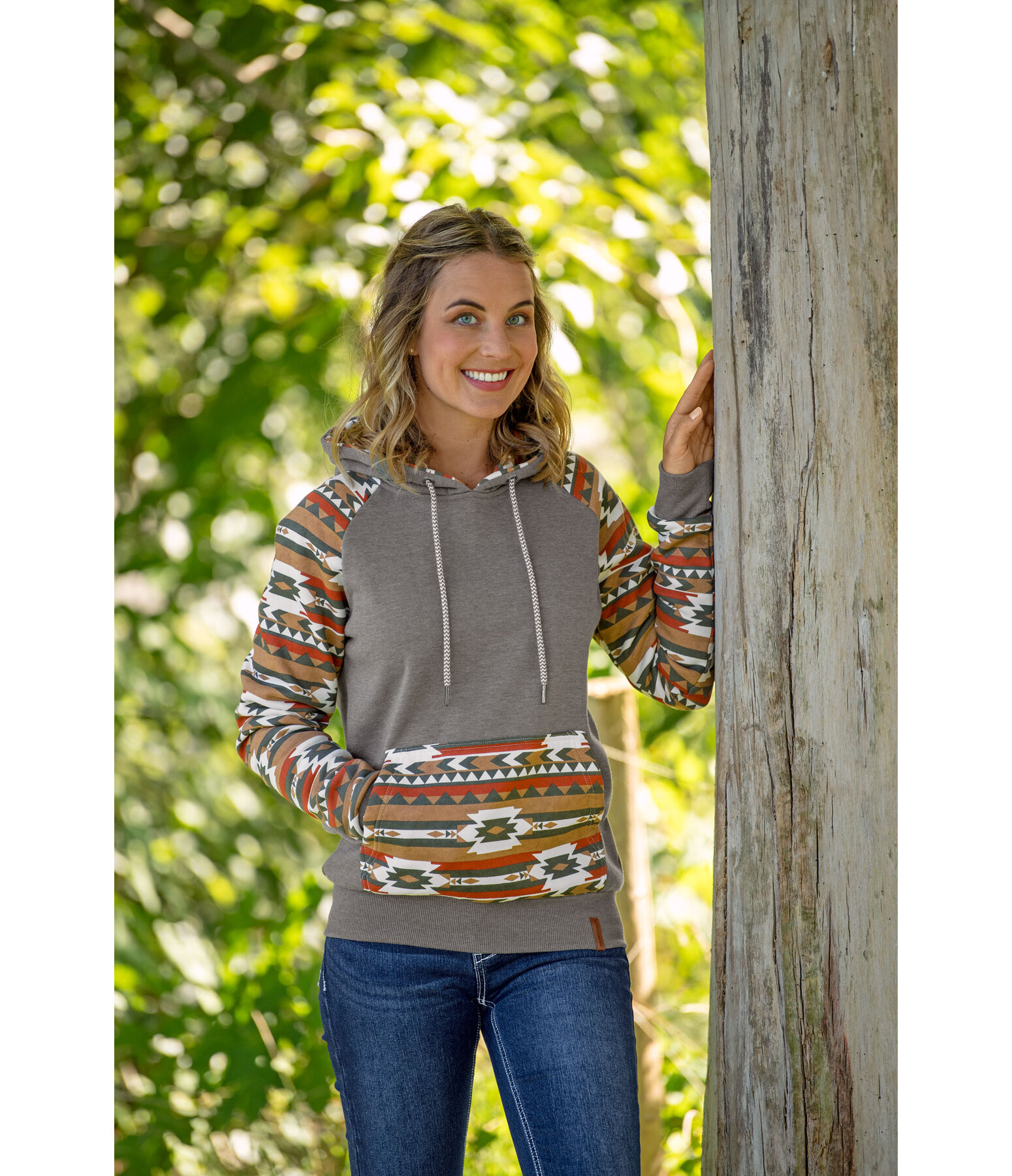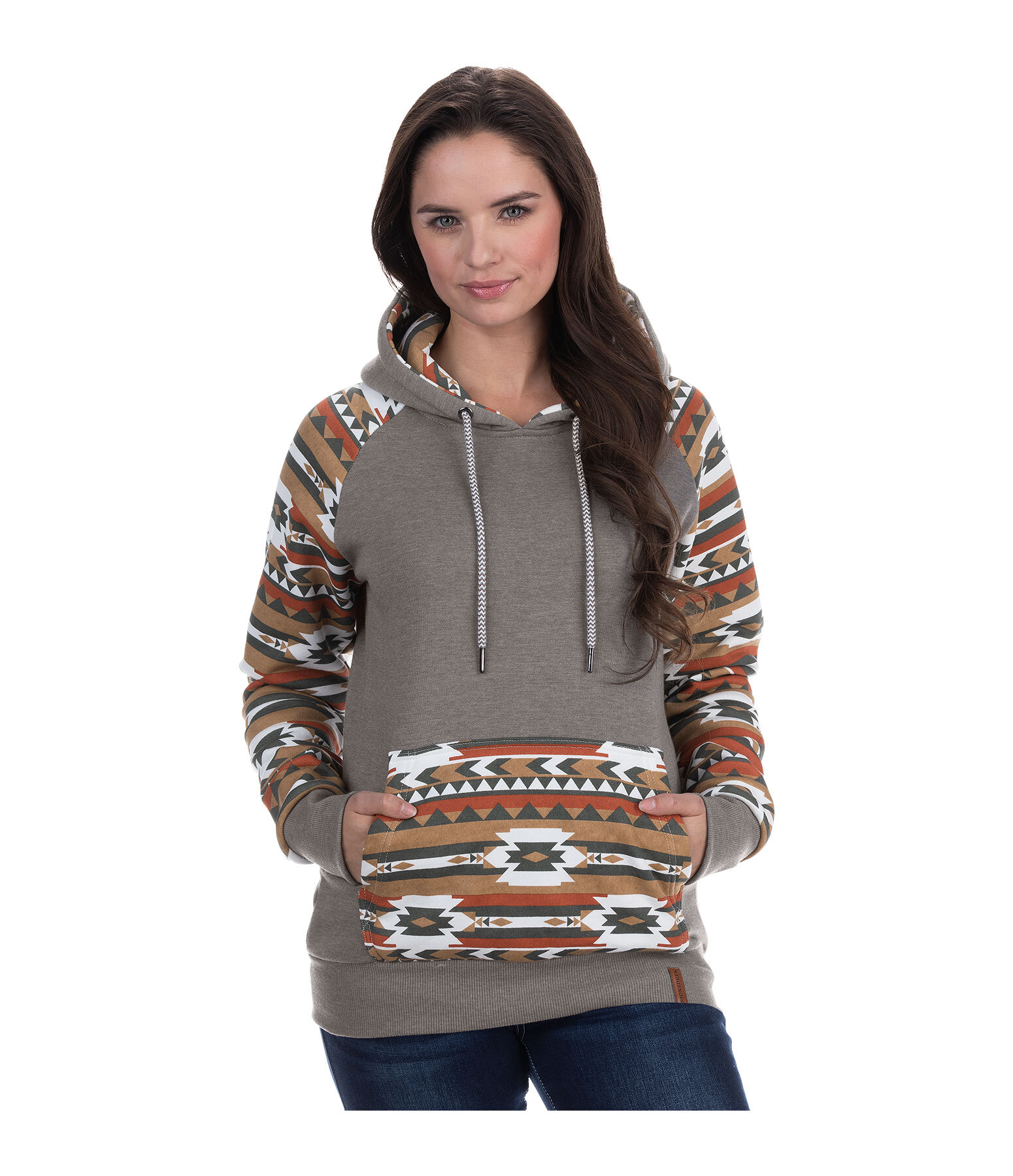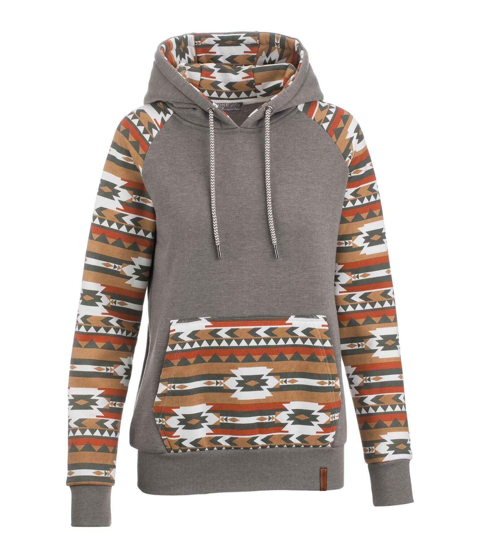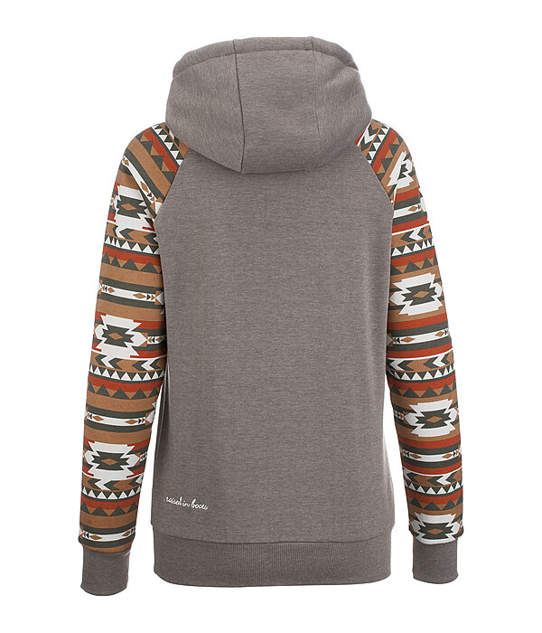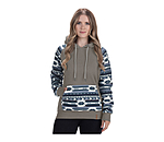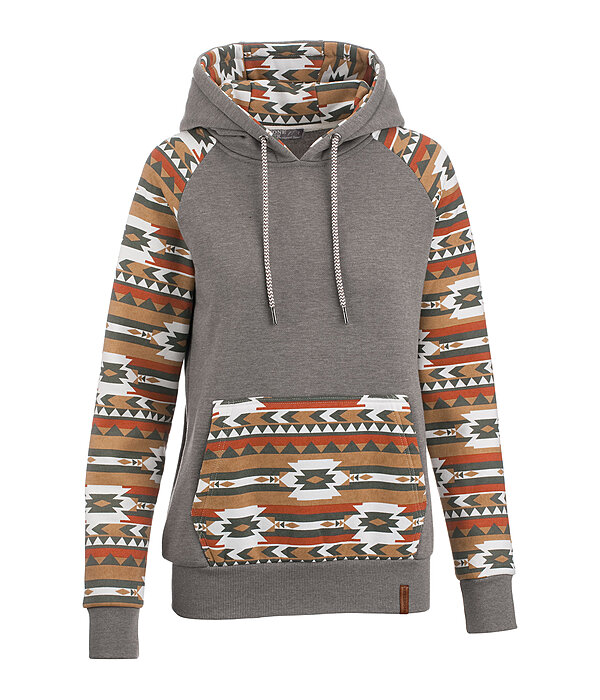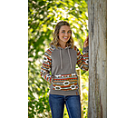Sweat à capuche avec motif aztèque. Poche kangourou. Finition en bord-côte à la taille et en bas des manches. 60 % coton, 40 % polyester.