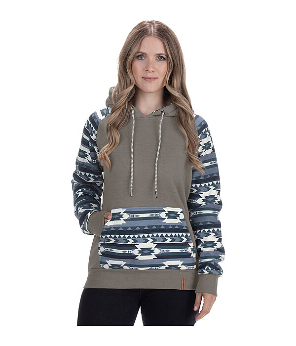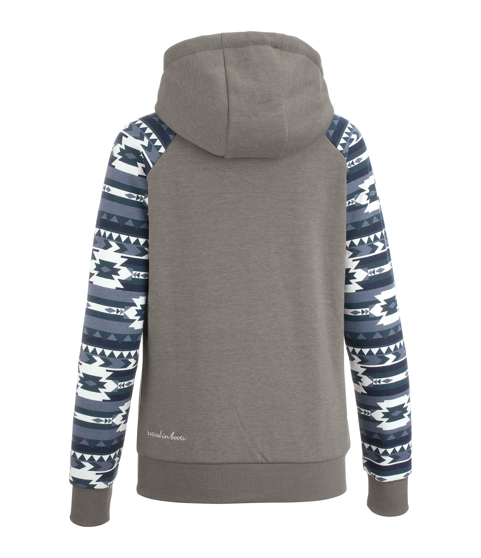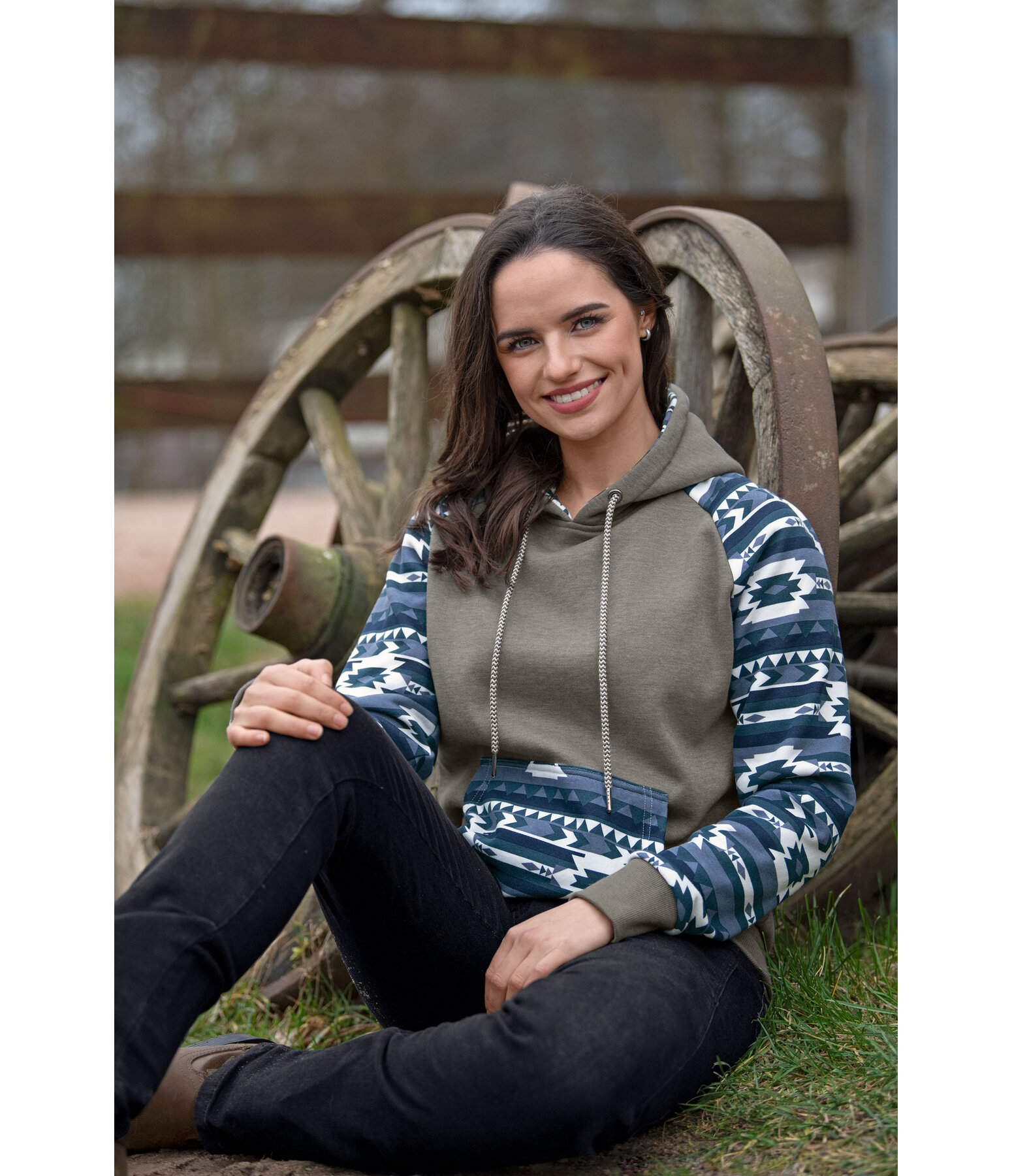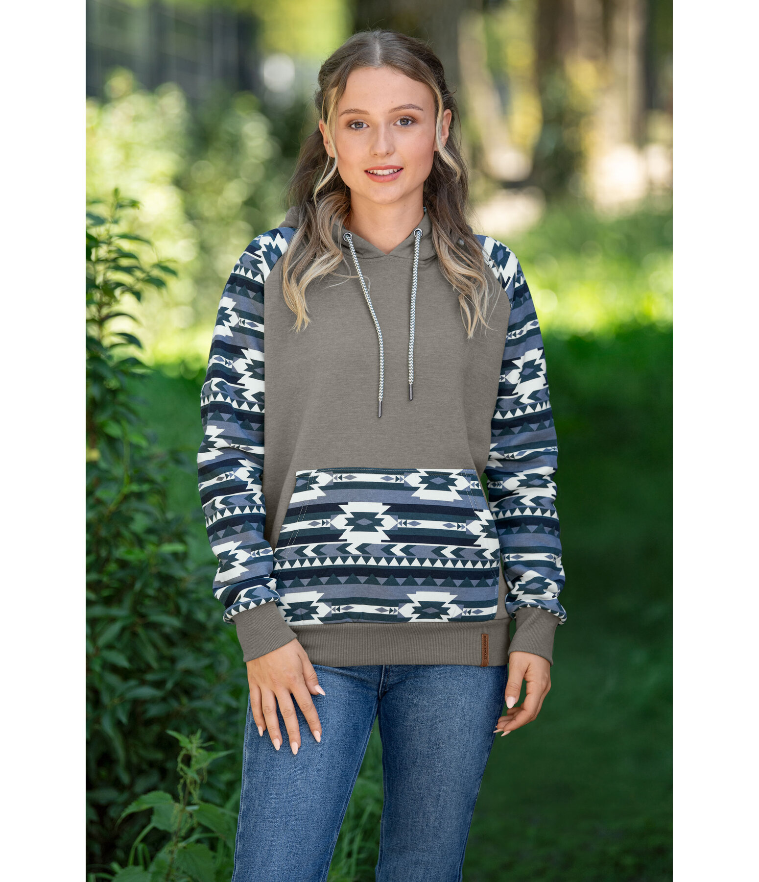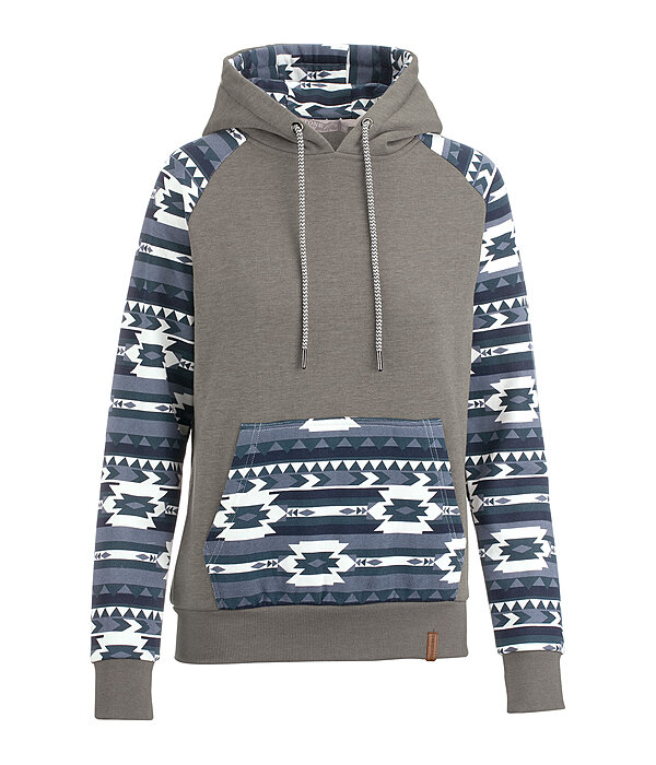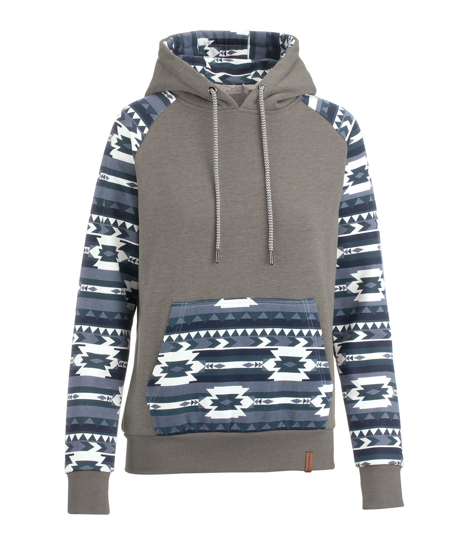 Sweat à capuche avec motif aztèque. Poche kangourou. Finition en bord-côte à la taille et en bas des manches. 60 % coton, 40 % polyester.