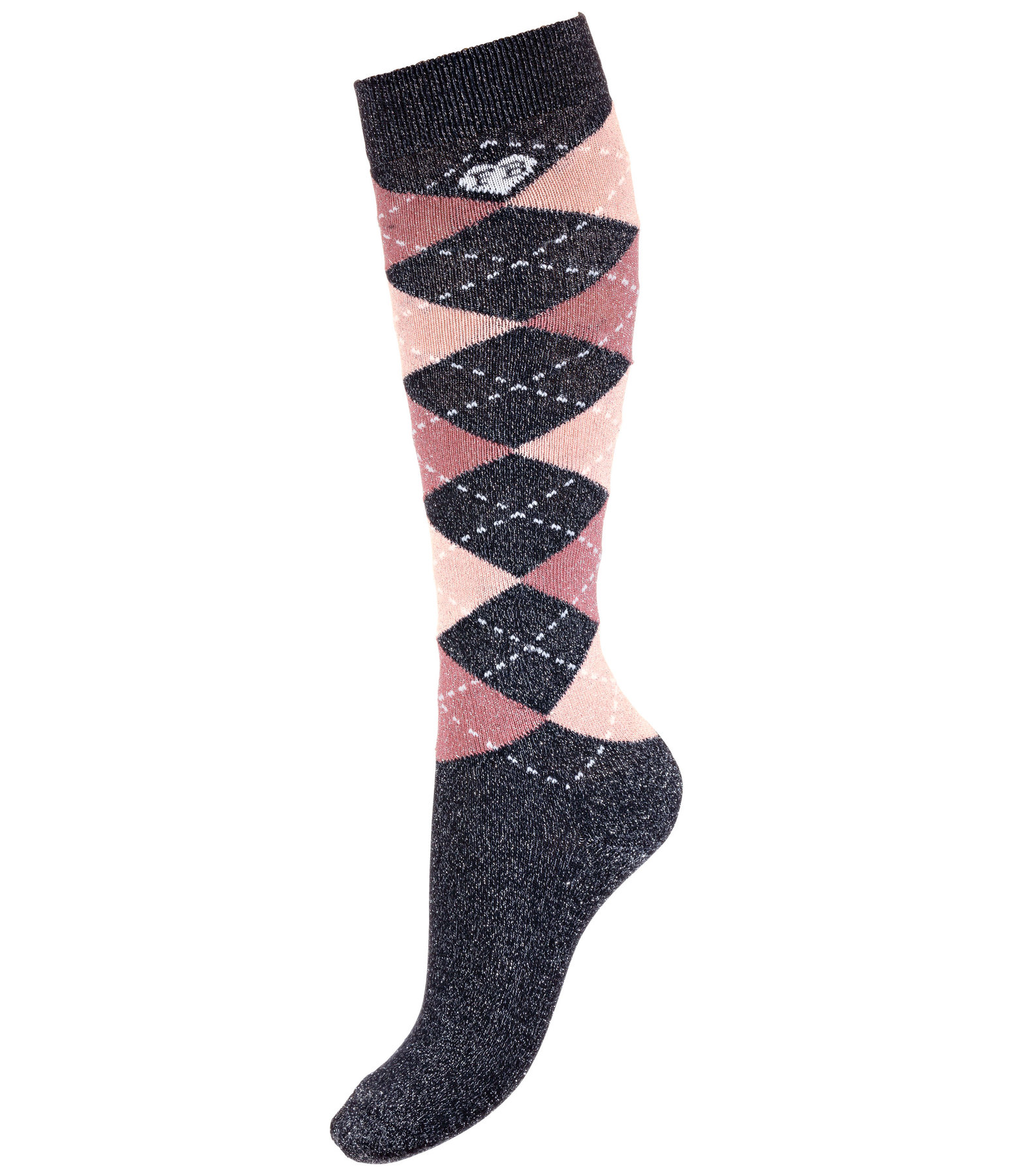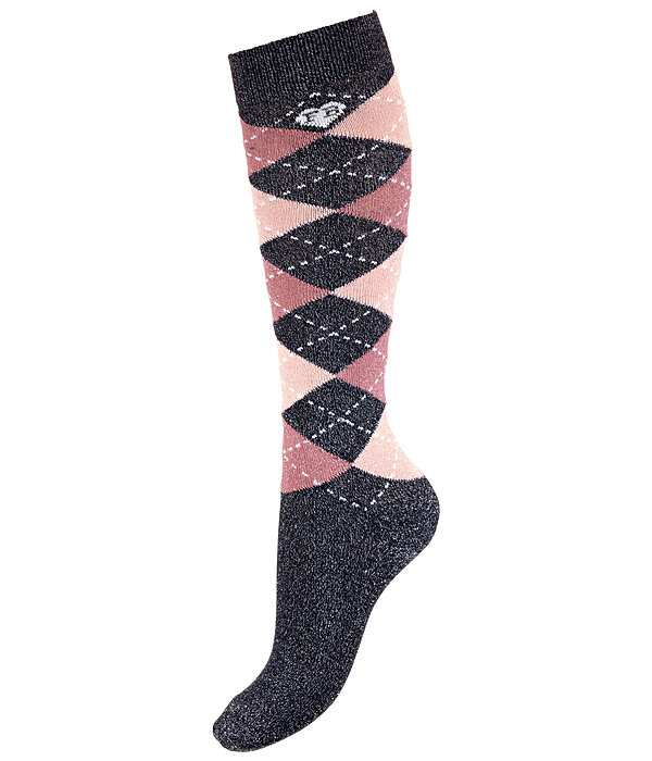 Chaussettes hautes pour enfant avec motif losanges et paillettes. Bord élastiqué pour un maintien sûr avec confort optimal. Voûte plantaire rembourrée. 40 % coton, 37 % polyester, 20 % nylon, 3 % élasthanne.