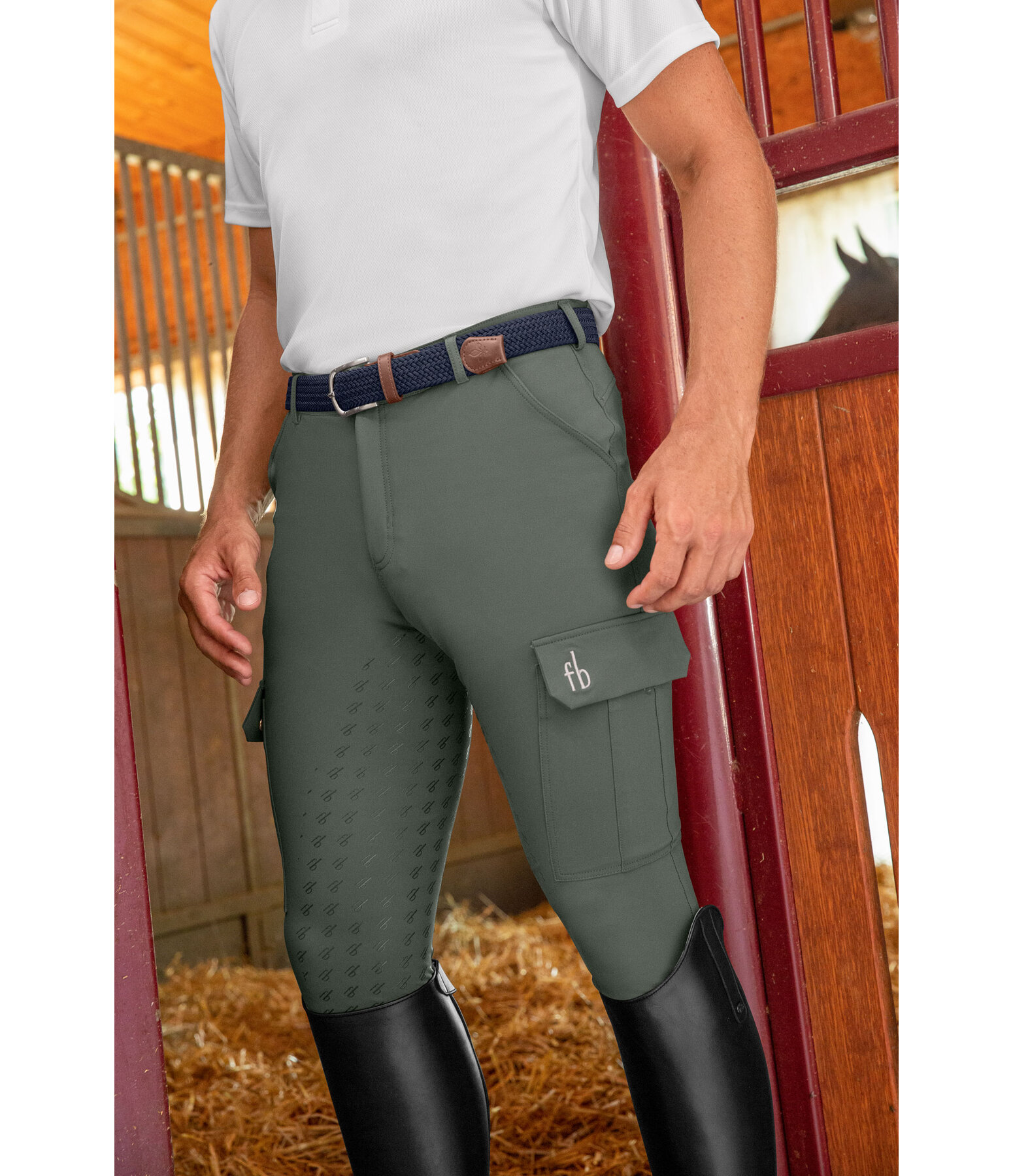 Pantalon d'équitation technique avec fond intégral grip en silicone Felix Bühler. Matière déperlante et respirante. Deux poches à l'avant et une poche cargo avec boutons-pression sur chaque jambe. Ceinture élastiquée avec passants et bande en silicone avec inscription Felix Bühler à l'intérieur pour un maintien optimal. Broderie Felix Bühler sur la poche gauche. Bas de jambe extensible sans patte auto-agrippante. 77 % polyamide, 23 % élasthanne.