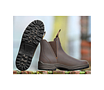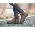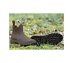 Bottines élégantes et robustes. Cuir gras haut de gamme. Assise plantaire confortable. Inserts élastiques pour un enfilage et retrait rapides. Doublure intérieure en matière respirante (100 % polyester). Semelle crantée en caoutchouc robuste et talon cavalier pour une adhérence optimale sur les sols glissants et dans les étriers. Semelle intérieure amortissante et amovible. Fabriquées au Portugal.