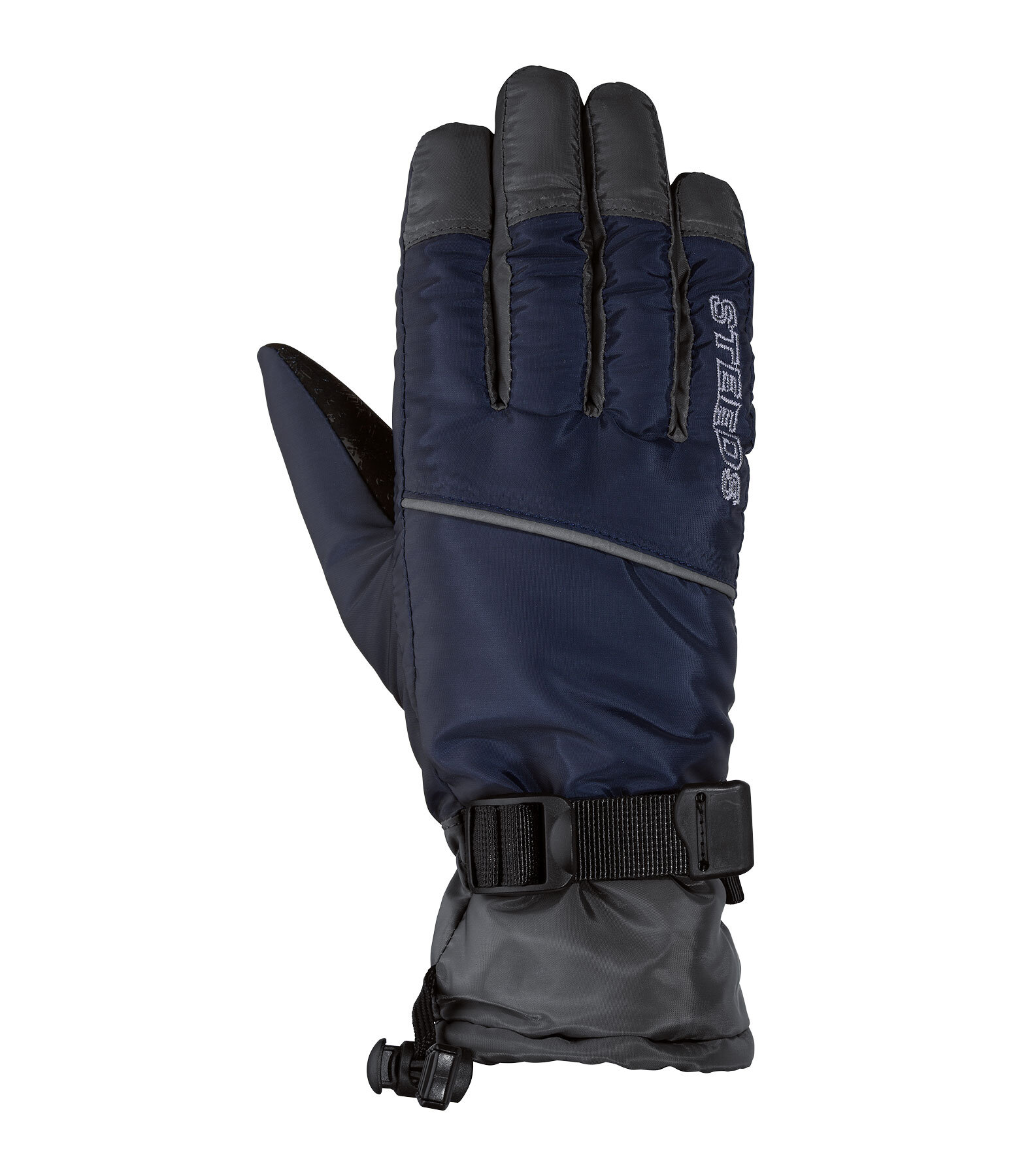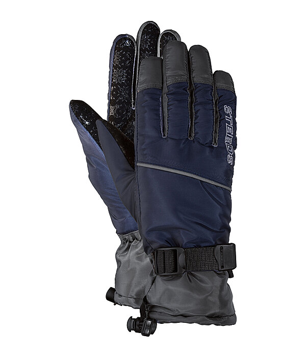 Gants d'hiver chaudement doublés avec excellent confort. Déperlants, coupe-vent et respirants. Poignets réglables, bandes réfléchissantes et renforts aux passages de rênes avec imprimés Grip pour une meilleure prise en main. Dessus 70 % polyester, 30 % élasthanne. Paume 100 % polyuréthane.