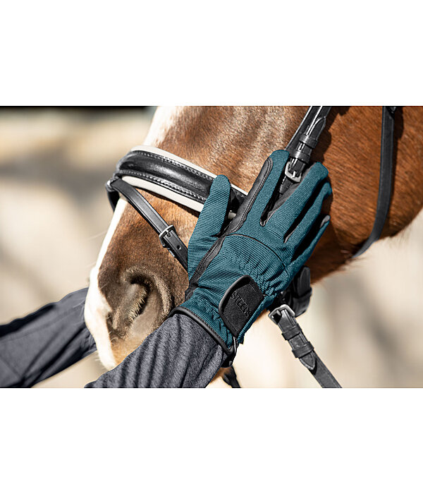 Gants très confortables particulièrement bien ajustés. Matière extensible avec insert élastique sur le dos de la main pour une plus grande élasticité, paume en PU pour une bonne prise en main des rênes. Version hiver avec doublure chaude. Dessus 100 % polyester. Paume 100 % polyuréthane.