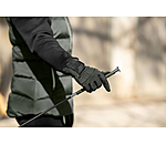 Gants très confortables particulièrement bien ajustés. Matière extensible avec insert élastique sur le dos de la main pour une plus grande élasticité, paume en PU pour une bonne prise en main des rênes. Version hiver avec doublure chaude. Dessus 100 % polyester. Paume 100 % polyuréthane.