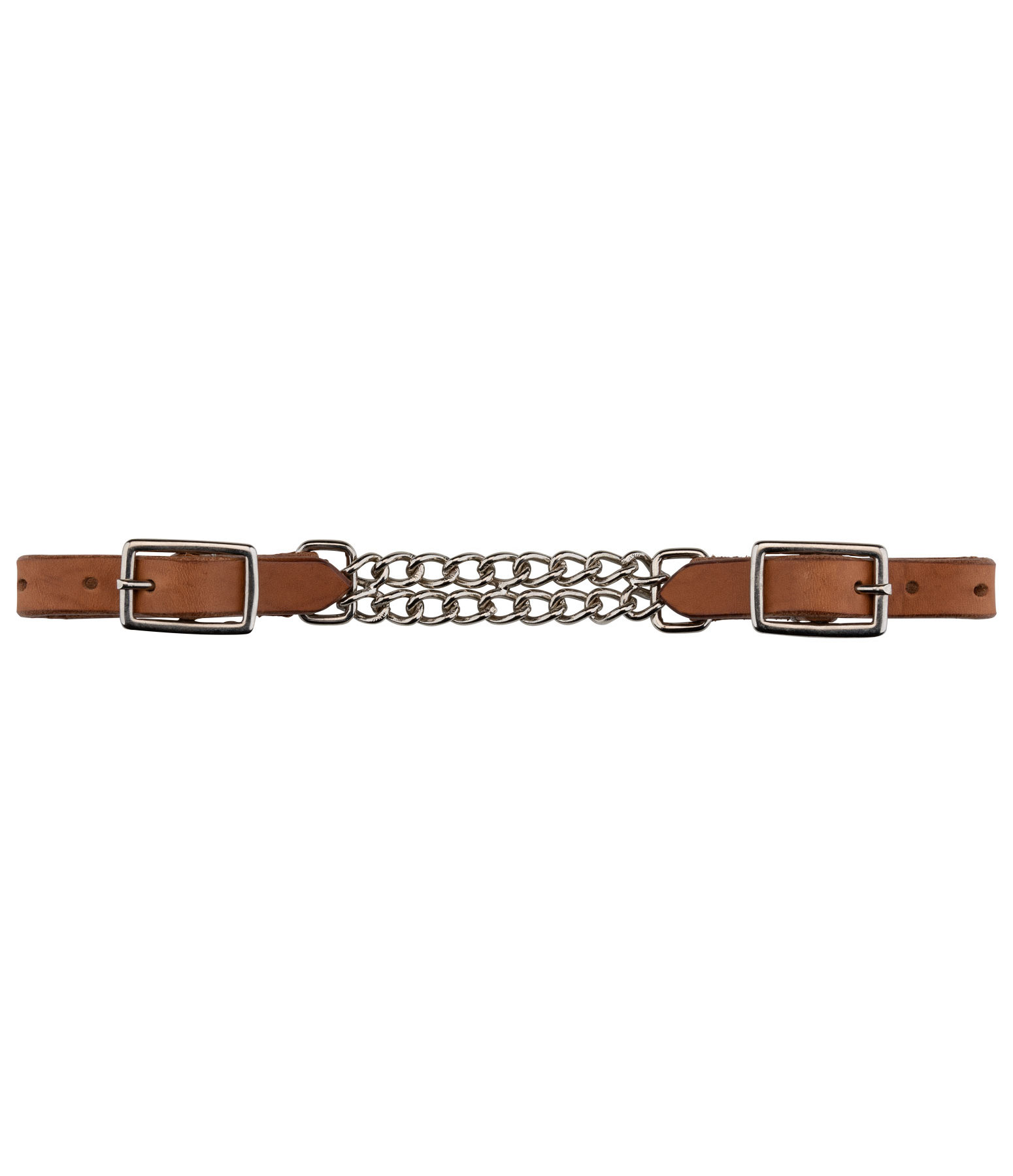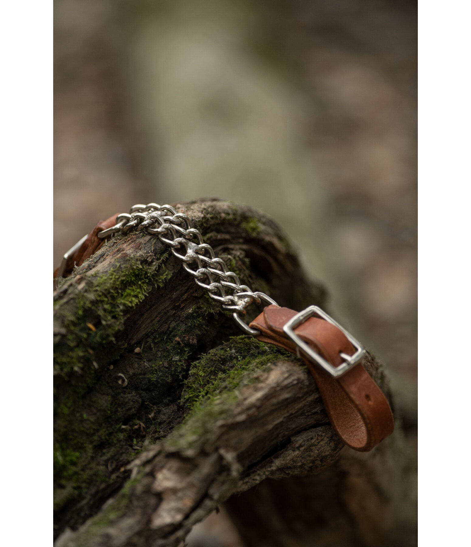Gourmette robuste réglable des deux côtés. Double chaîne. Cuir de grande qualité.